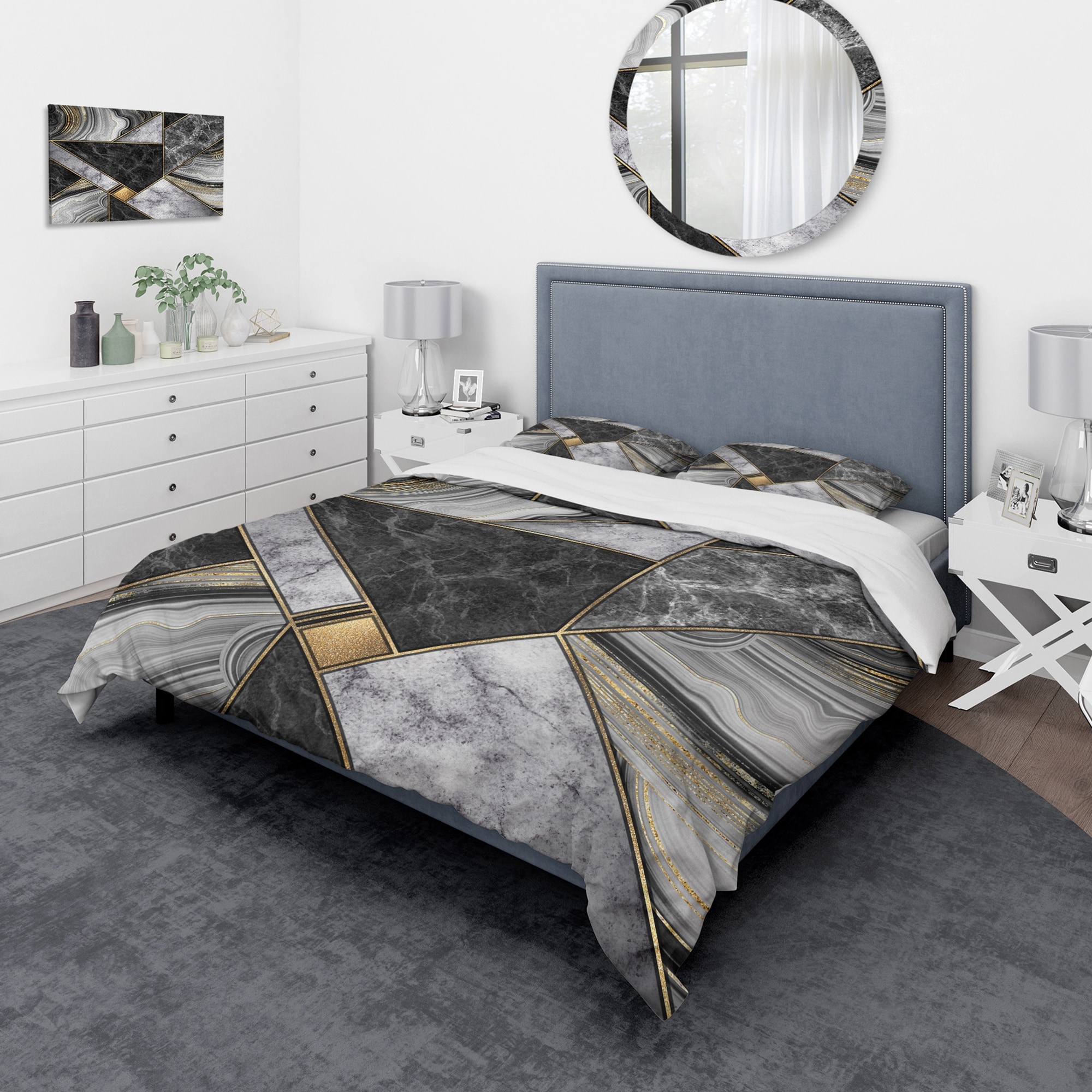 Designart 'Marble Granite Agate With Touches of Gold' Modern Duvet Cover Set