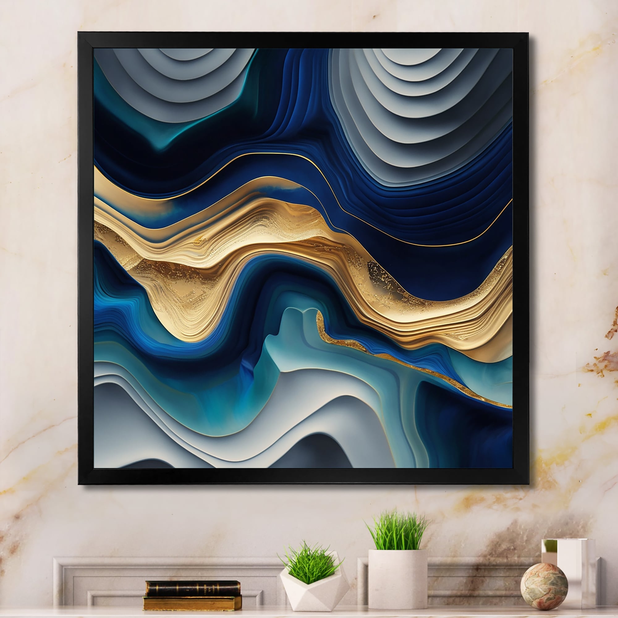 Designart "Marble Granite Agate With Touches of Gold XV" Modern Geometric Framed Wall Art Living Room