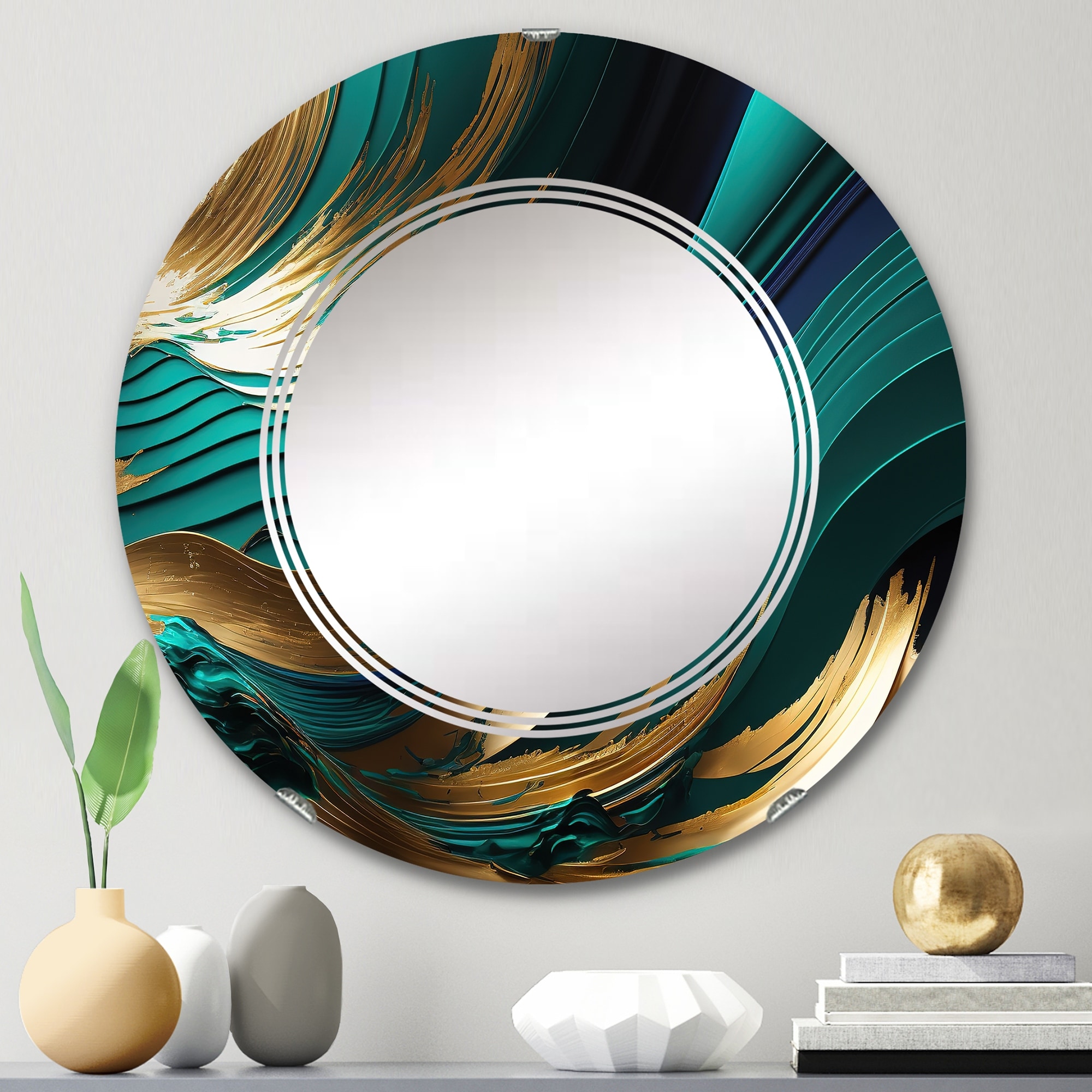 Designart 'Moss Agate bush' Printed Modern Round or Oval Wall Mirror - Wave