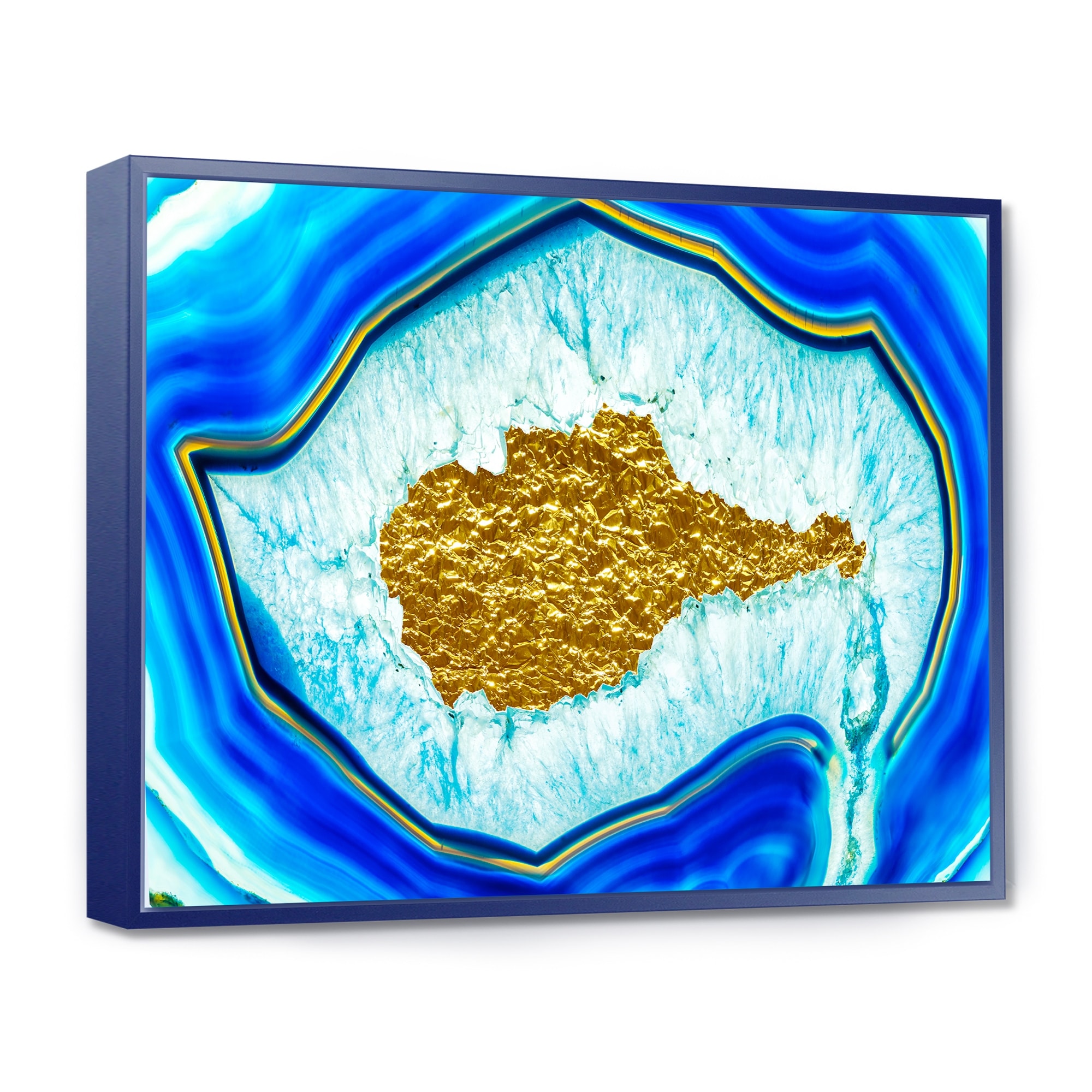 Designart "Vibrant Blue And Gold Agate I" Modern Framed Art Print