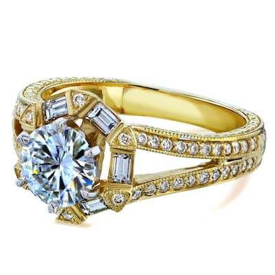 Annello by Kobelli 14k Yellow Gold 1 1/2ct TCW Forever One Moissanite Diamond Open Shank Art Deco Engagement Ring