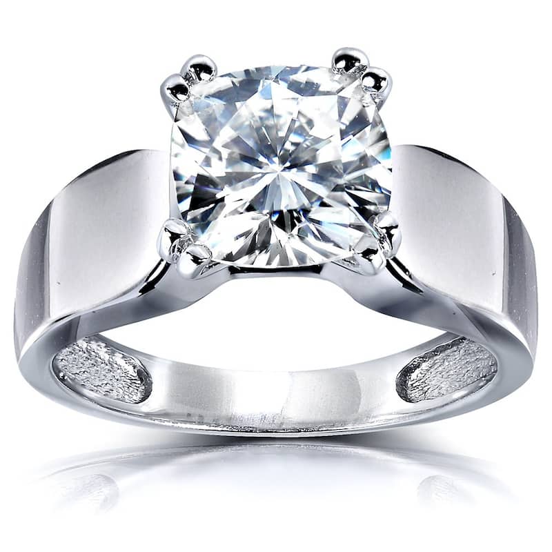 Annello by Kobelli 14k White Gold 2ct Solitaire Forever One Moissanite Cushion-cut Wide Band Engagement Ring (DEF/VS)