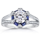 Annello by Kobelli 14k White Gold Forever One Moissanite Blue Sapphire and 1/4ct TDW Diamond Vintage Floral Bri