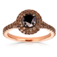 Kobelli 1.52 Carat Black and Champagne Diamond Halo 18k Solid Rose Gold Double Halo One-of-a-Kind Ring