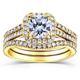 Annello by Kobelli 14k Yellow Gold 1 4/5ct TCW Forever One Colorless (DEF) Moissanite and Diamond Bridal Rings 3-pc Set