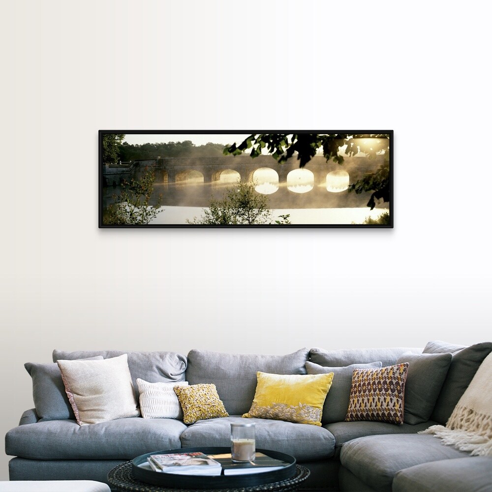 "Stone Bridge in Fog Loire Valley France" Black Float Frame Canvas Art