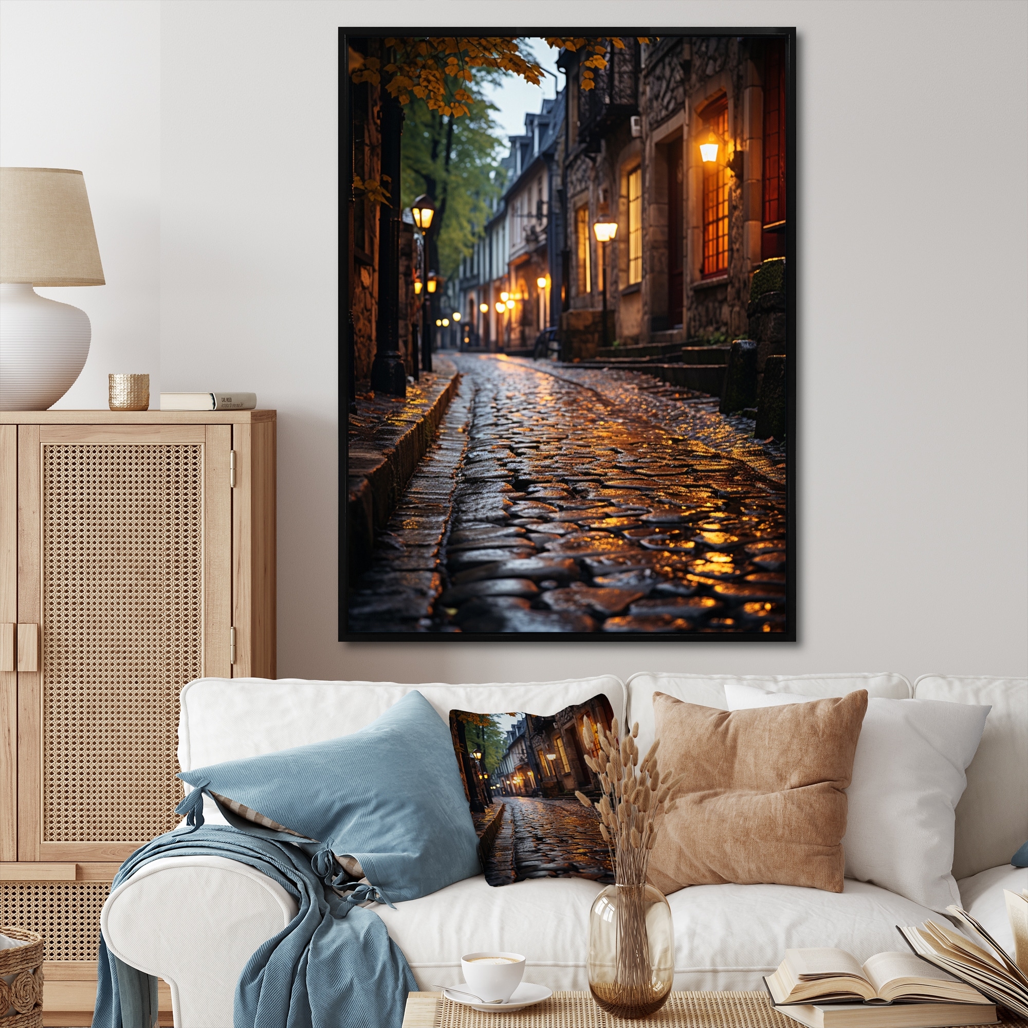 Designart "France Charming Cobblestones" France Framed Wall Art Prints