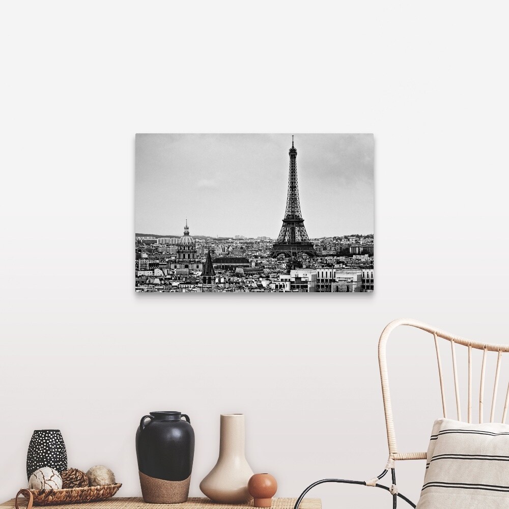 "View of city and Eiffel Tower, Paris, France." Canvas Wall Art