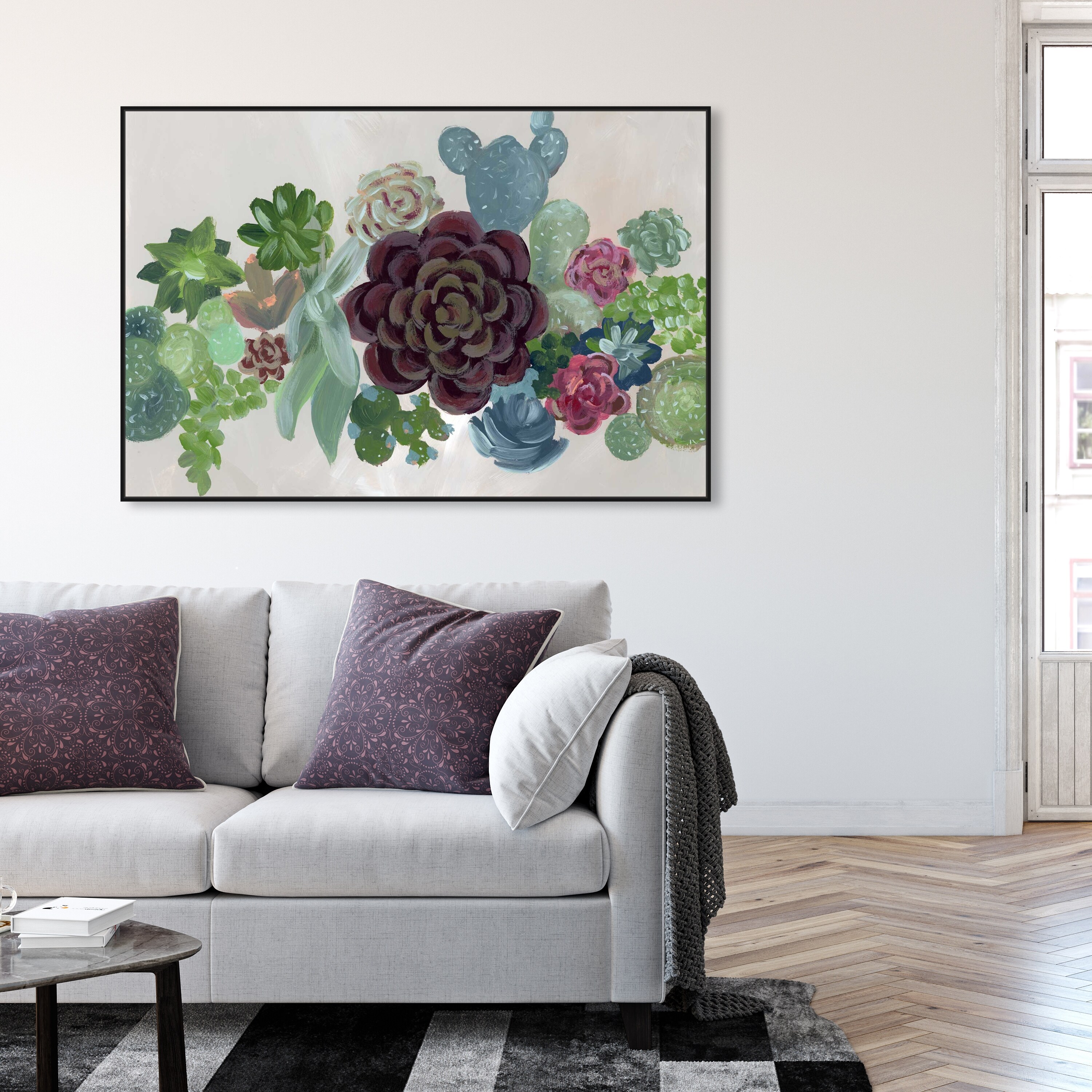 Oliver Gal 'Succulent Zoom' Floral and Botanical Wall Art Framed Canvas Print Botanicals - White, Green