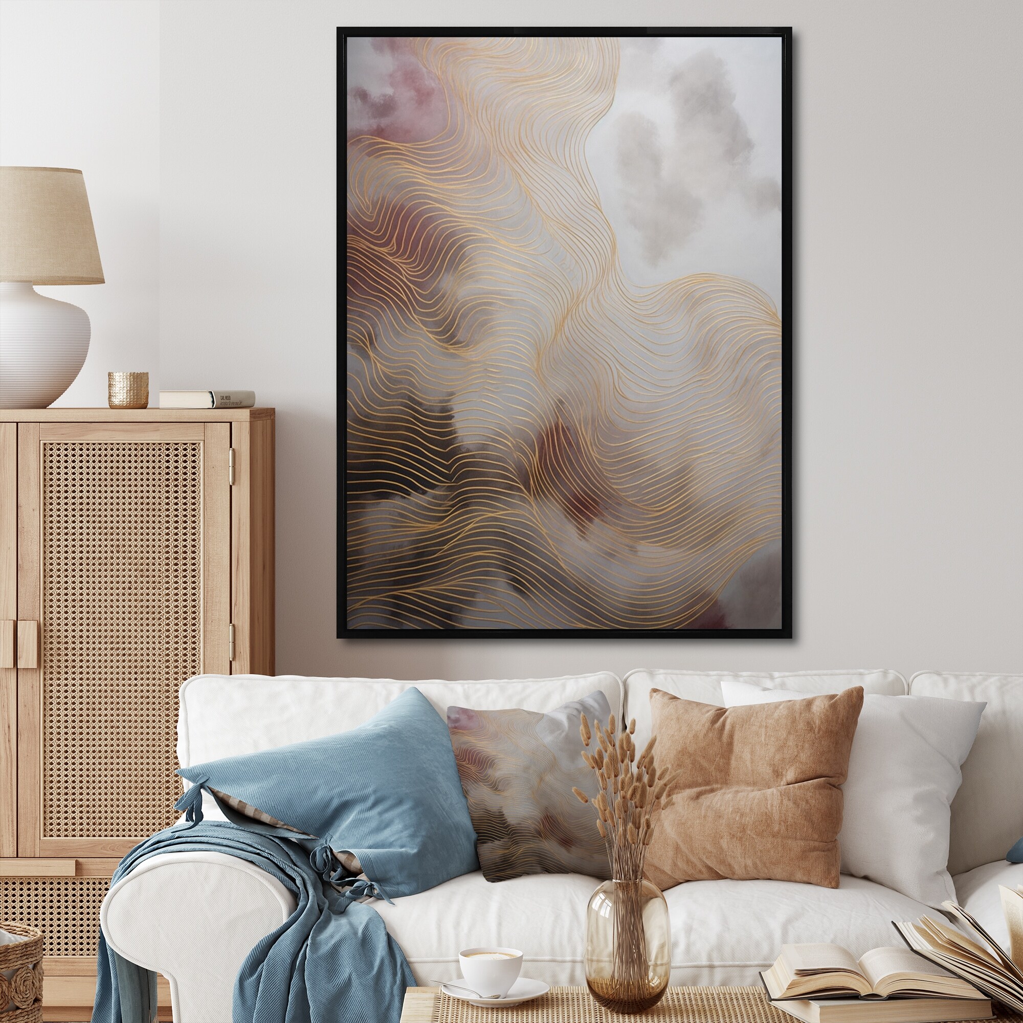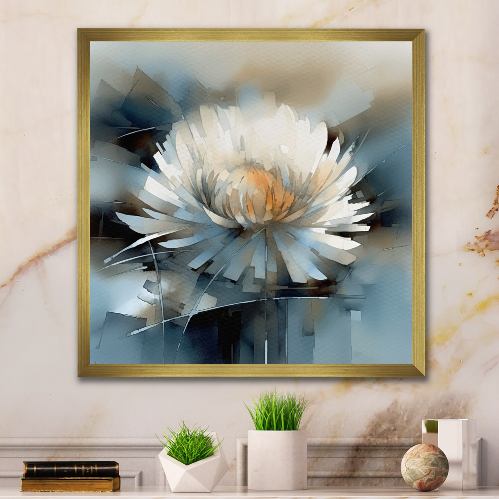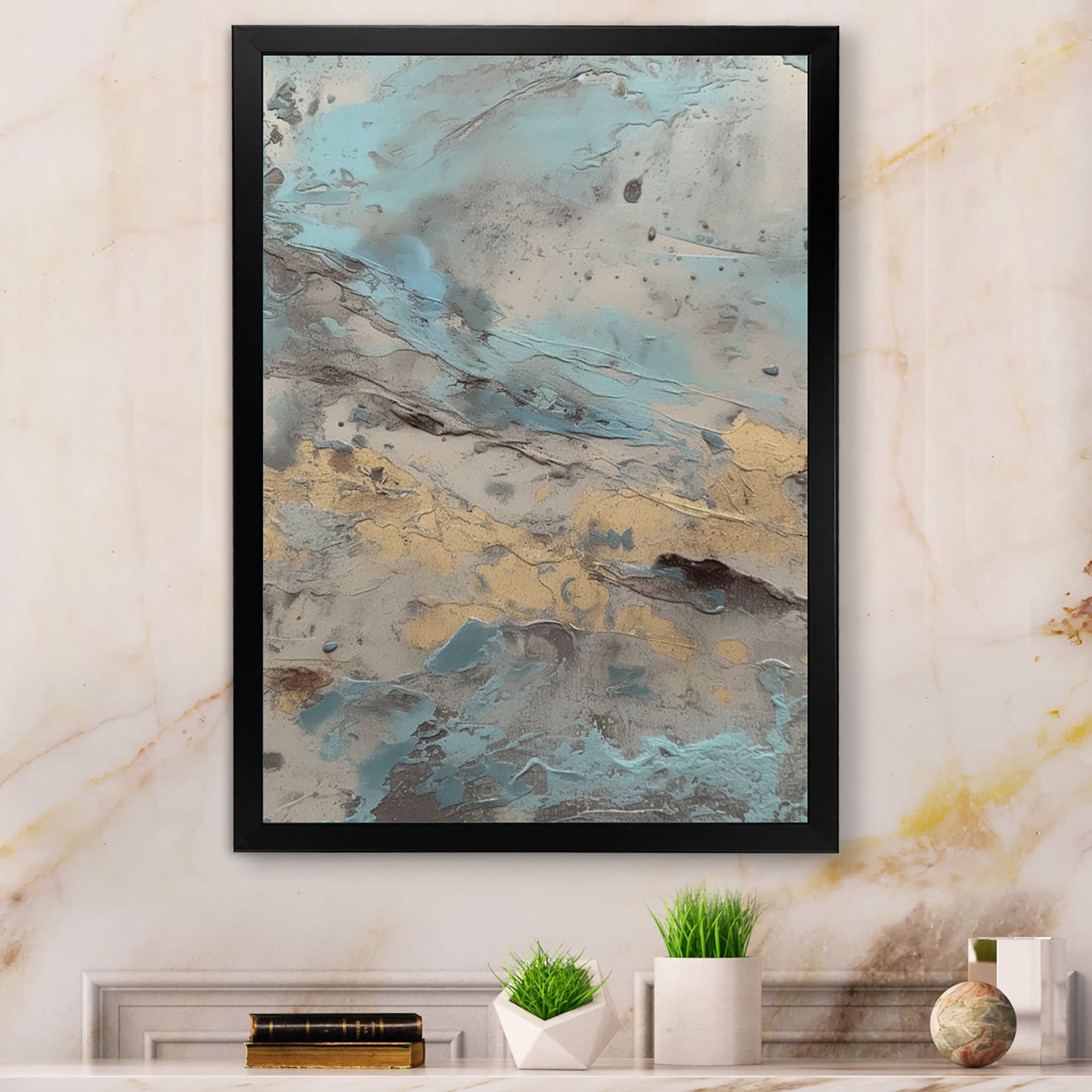 Designart "Beige Blue Marbled Artistry Ii" Modern Geometric Framed Canvas Art Print
