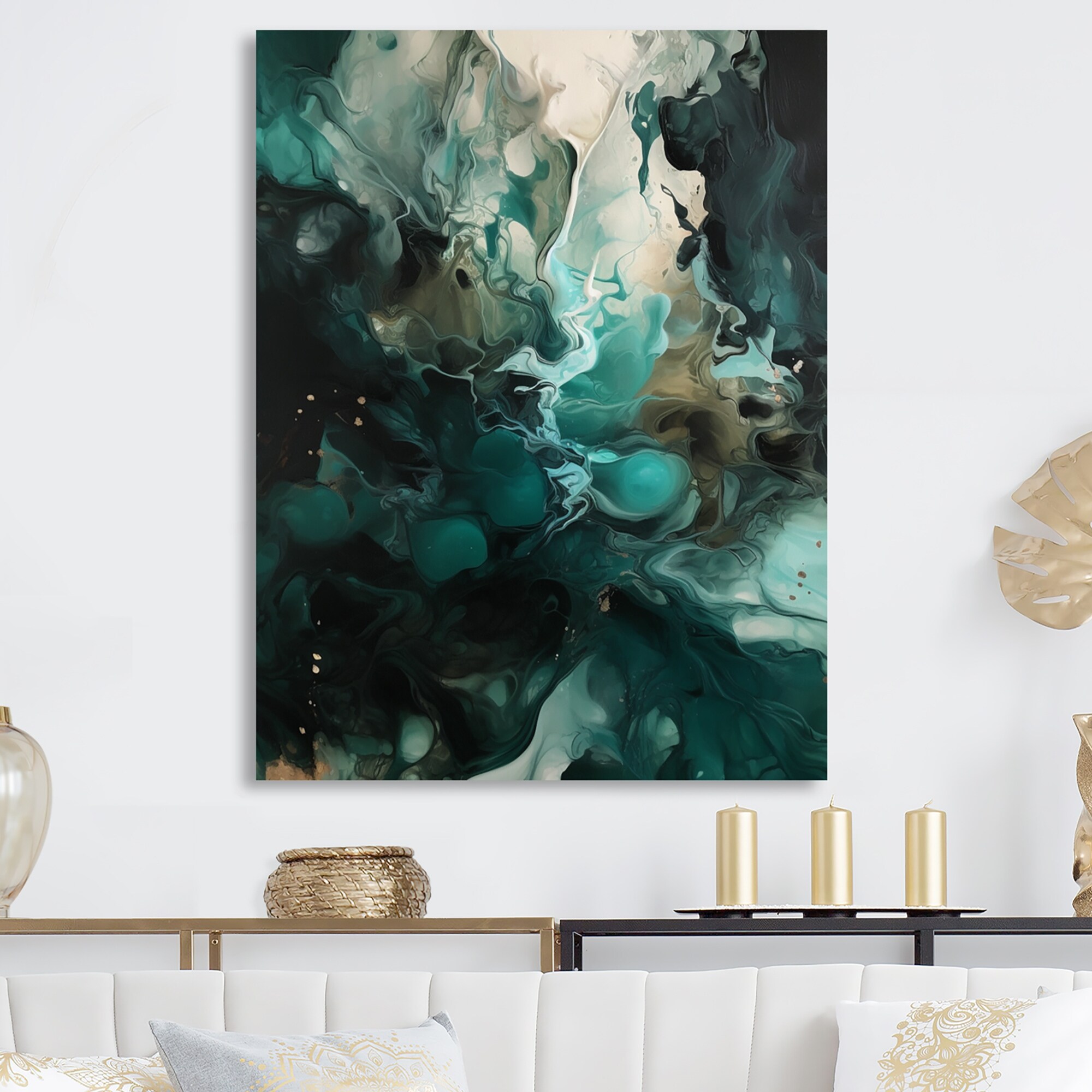Designart "Green White Marbled Artistry III" Modern Geometric Metal Wall Art
