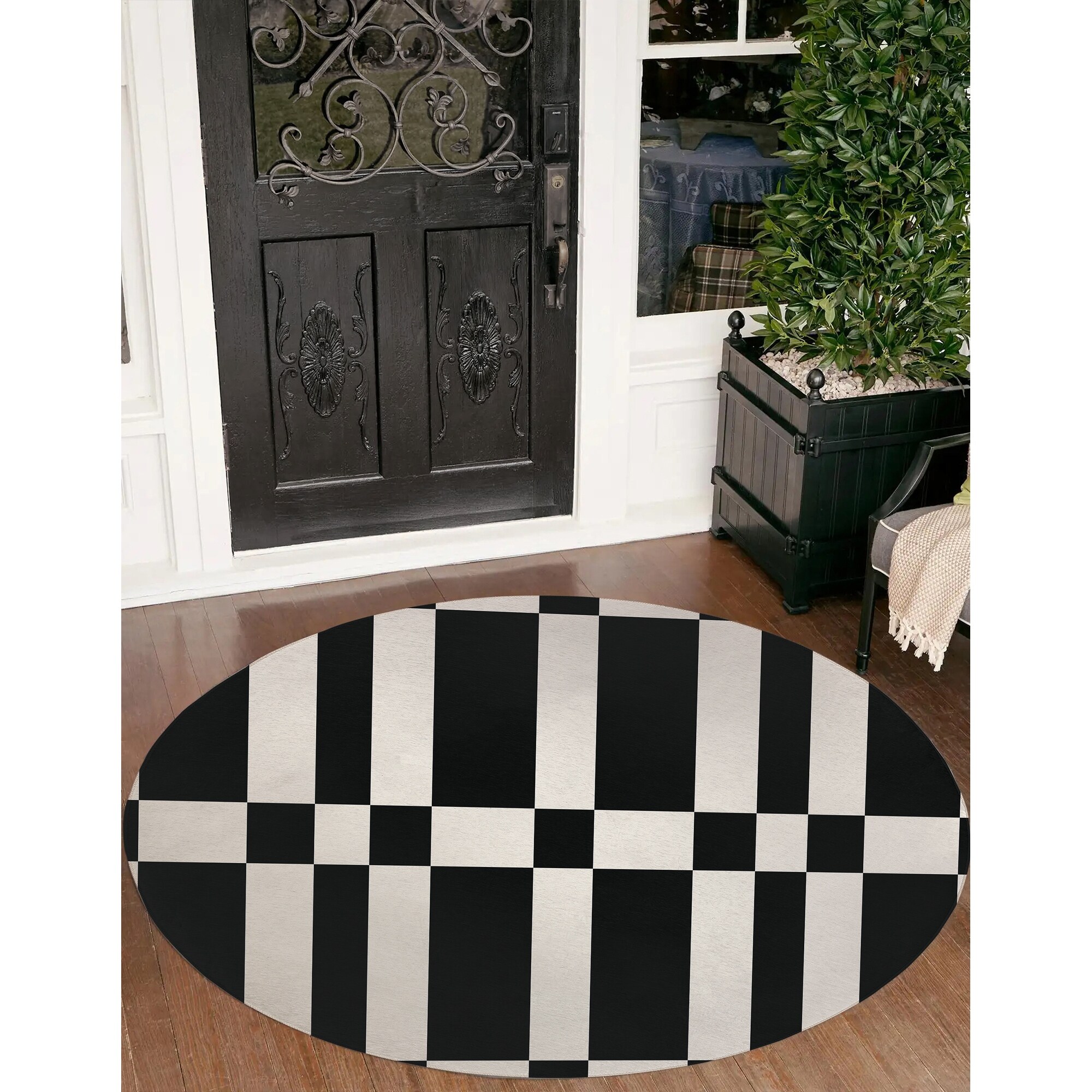 LONG CHECKS CHARCOAL Indoor Floor Mat By Becky Bailey