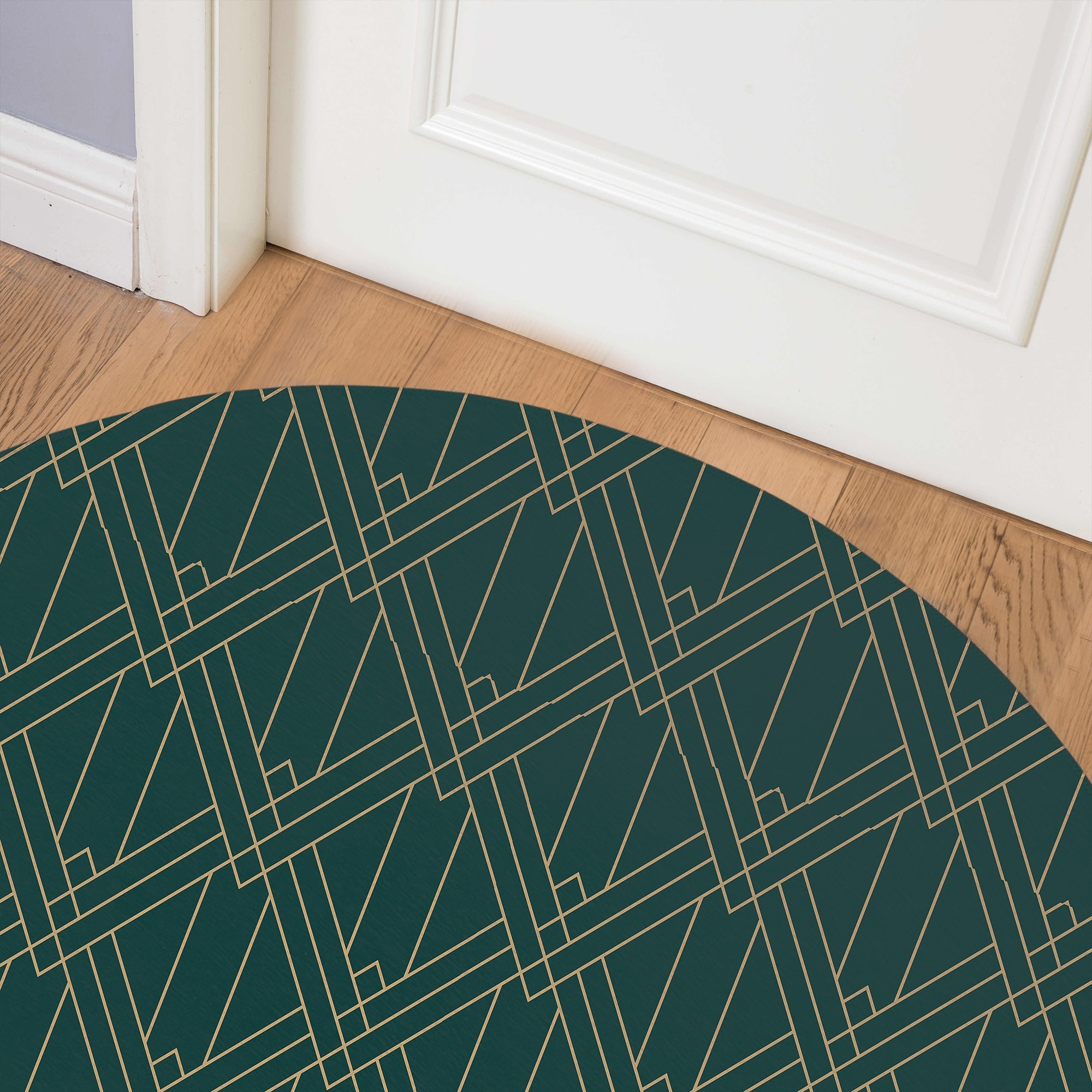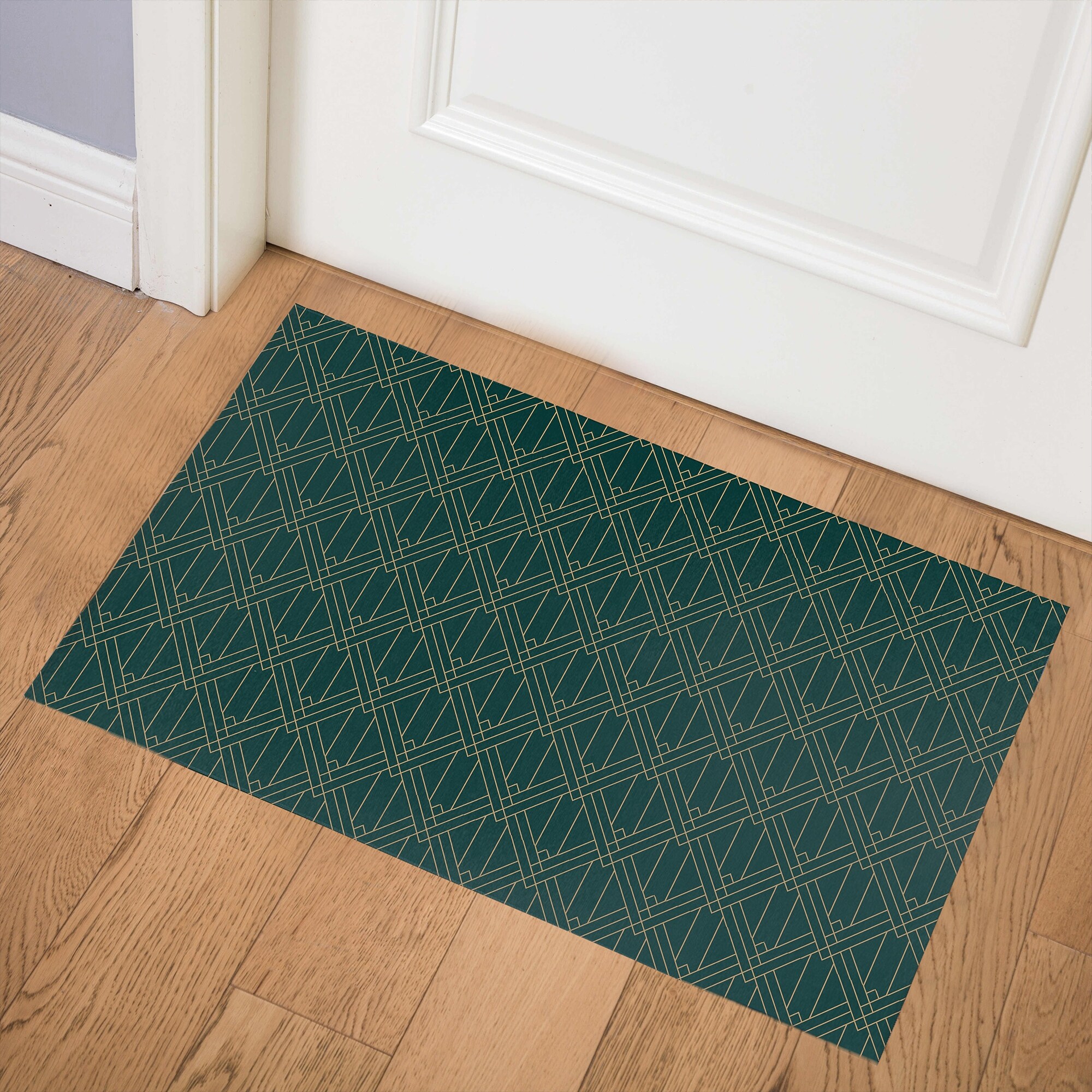ART DECO TRIANGLES DARK GREEN Indoor Floor Mat By Becky Bailey