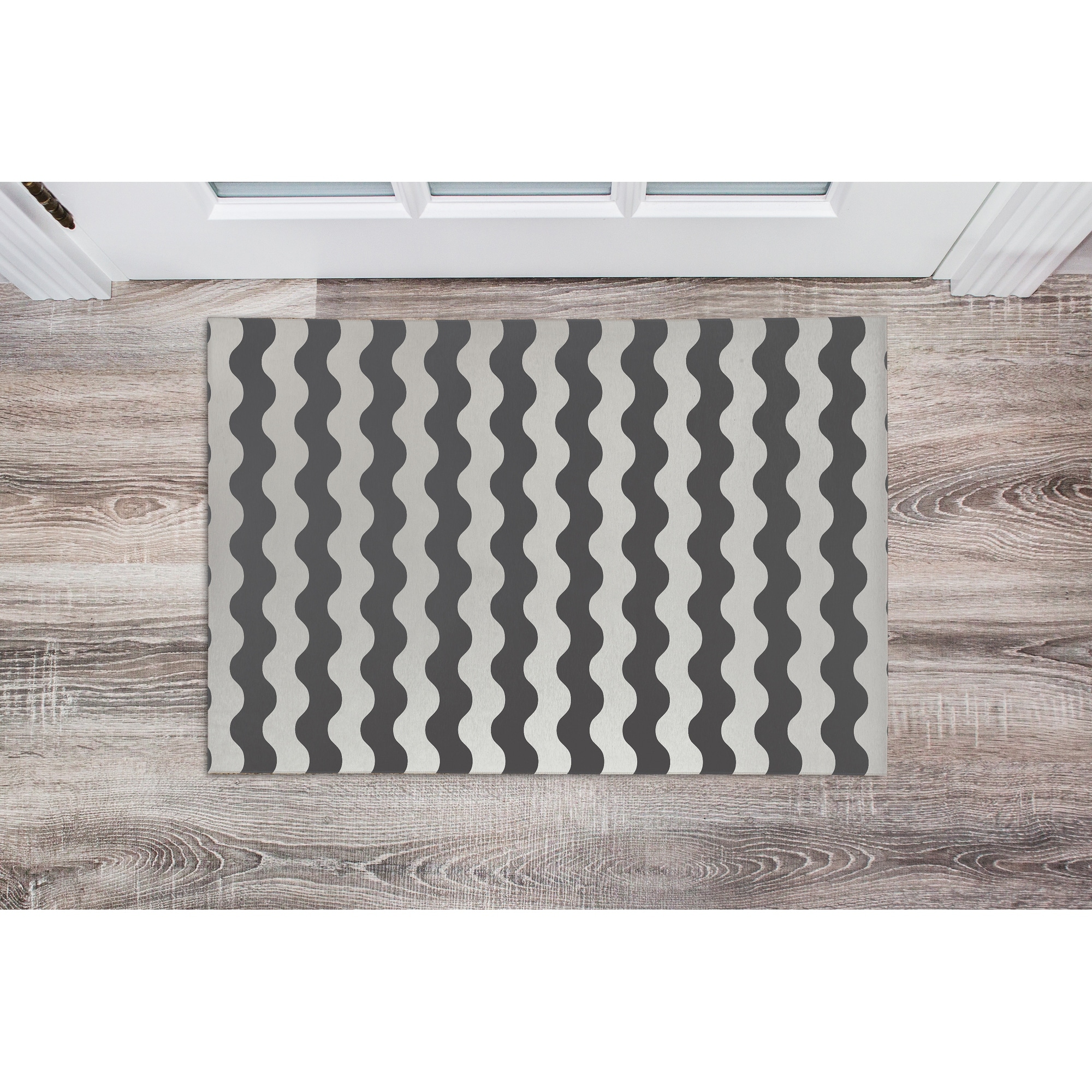 UNDULATING WAVY STRIPES CHARCOAL Indoor Floor Mat By Becky Bailey