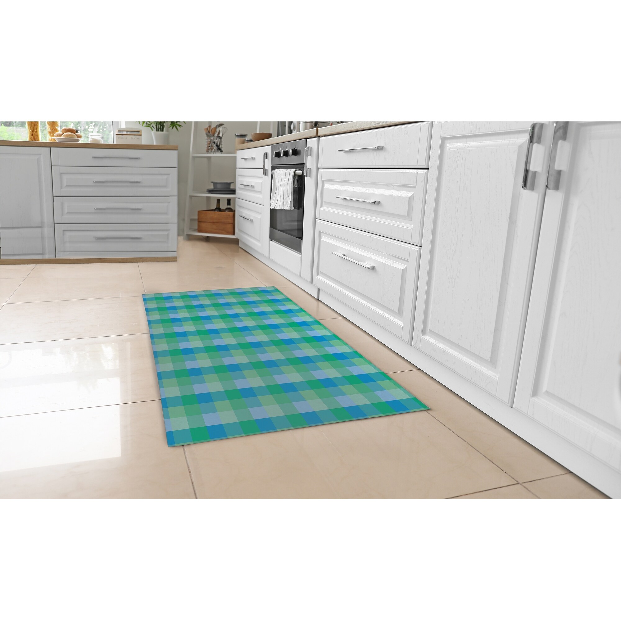 PLAID WEAVE BLUE Kitchen Mat By Becky Bailey