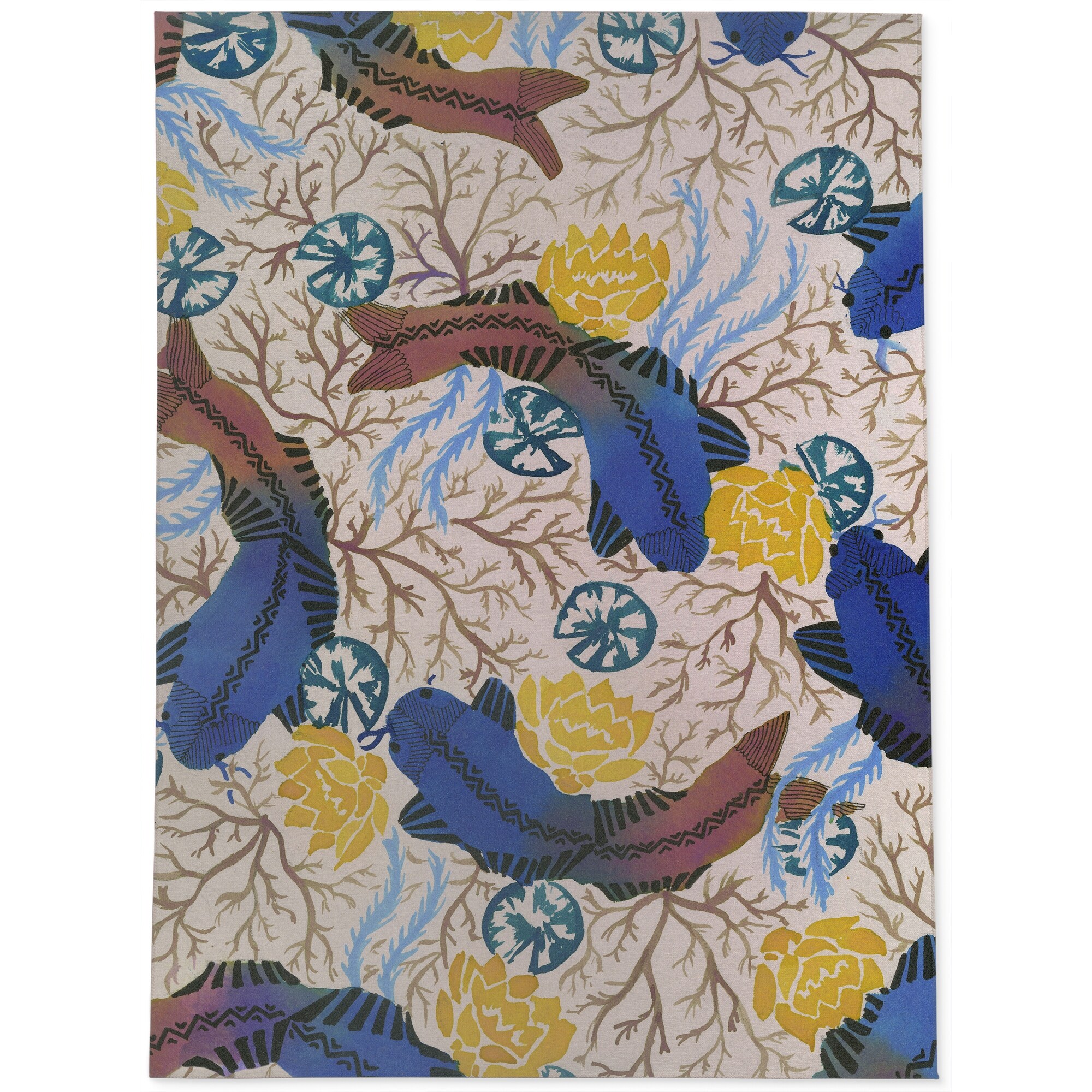 ZEN FISH BLUE & YELLOW Outdoor Rug By Becky Bailey