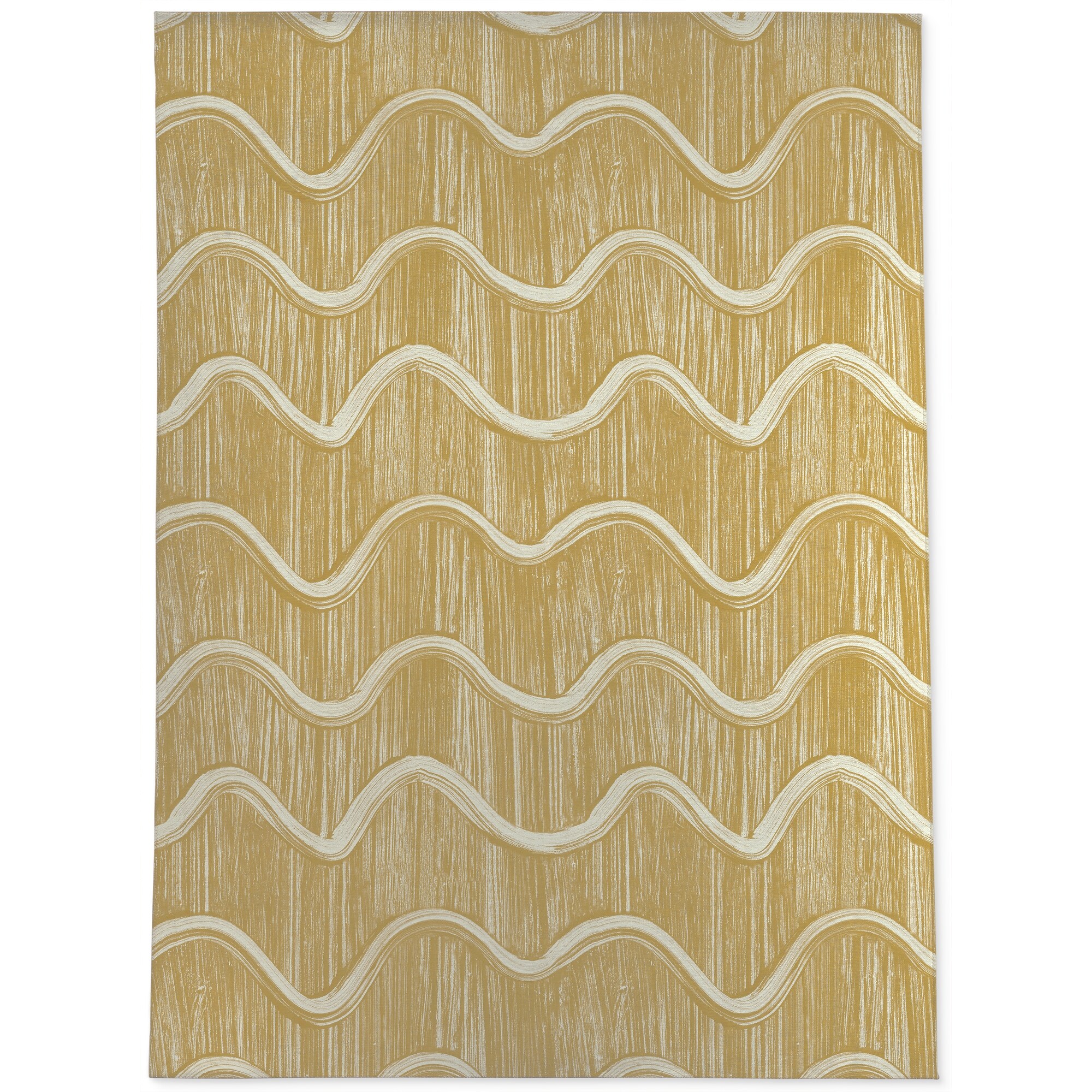 WAVY BRUSHSTROKES GOLD Outdoor Rug by, Becky Bailey