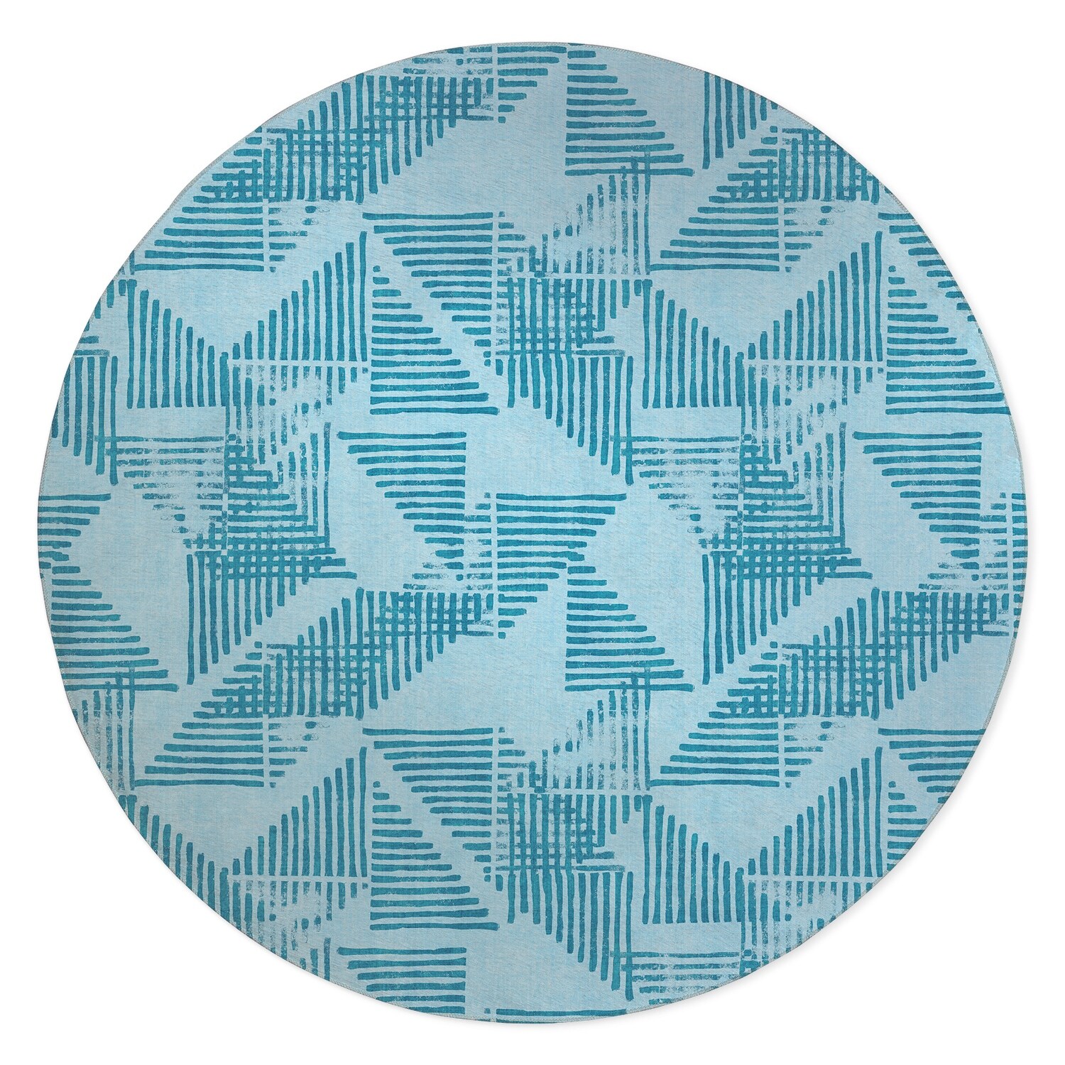 STRIPE TRIANGLE BLOCK PRINT TEAL Outdoor Rug By Becky Bailey