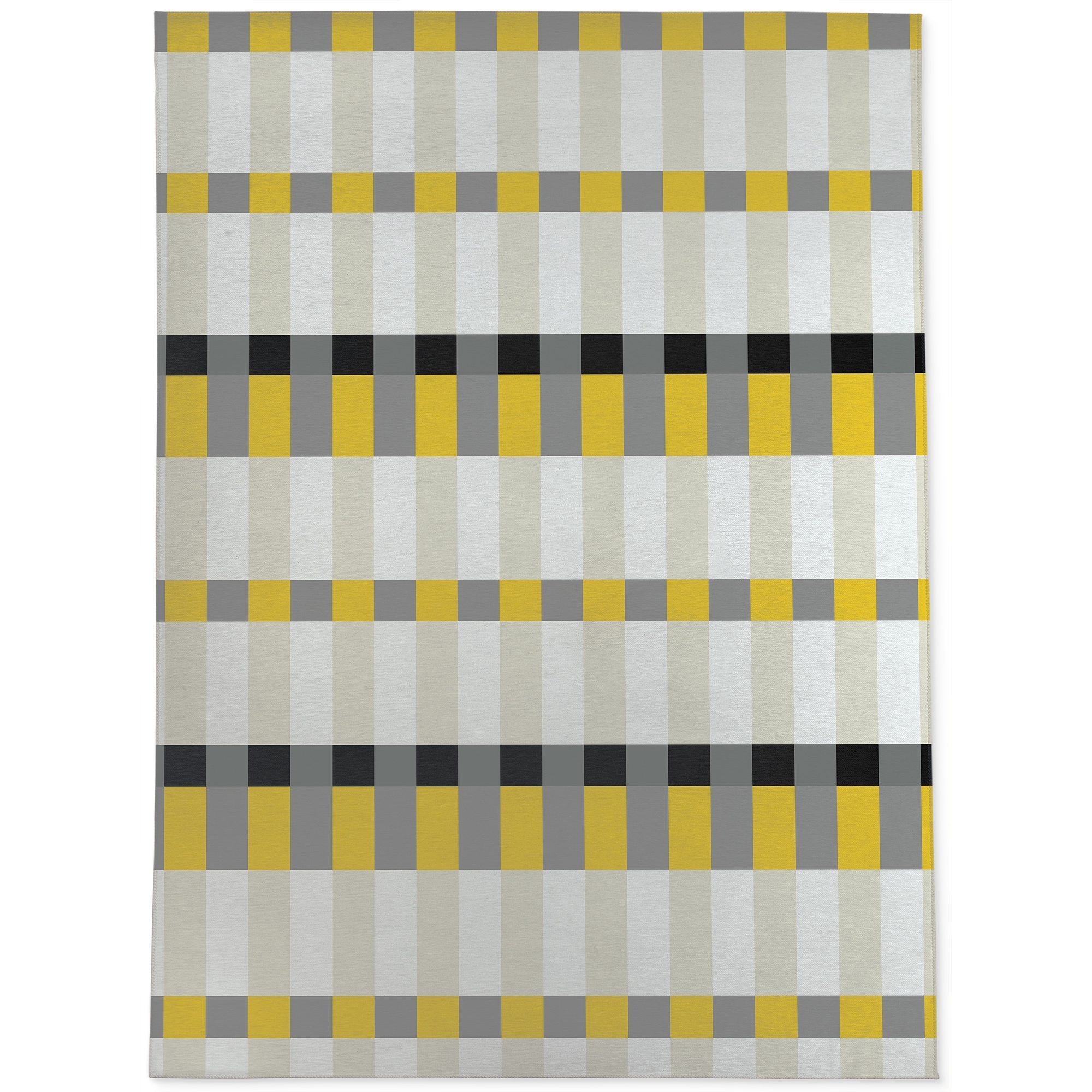 MODERN PLAID YELLOW AND GREY Outdoor Rug By Becky Bailey