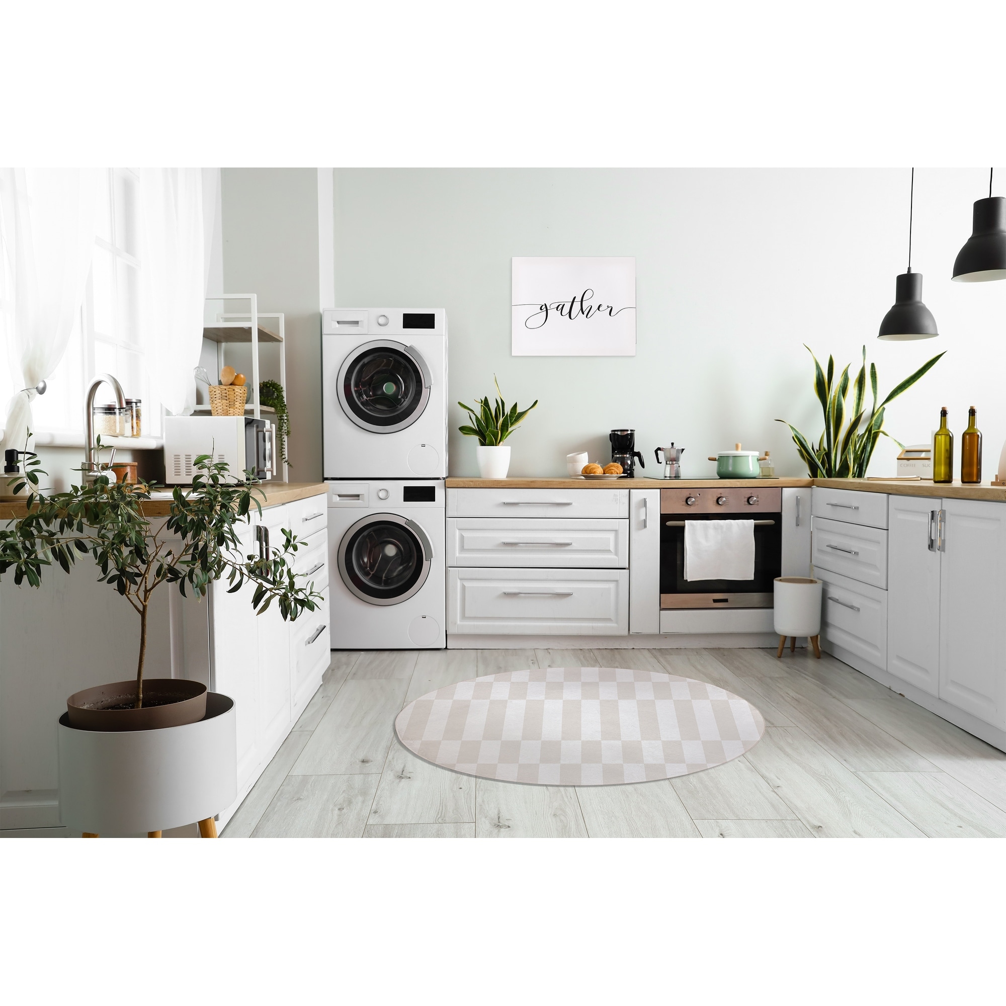 HORIZONTAL CHECKS TAN Kitchen Mat By Becky Bailey