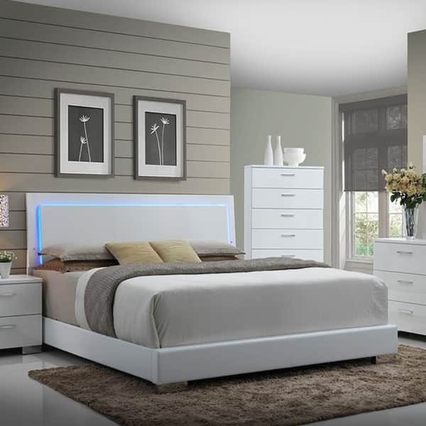 ACME Kaitlyn California King Bed with LED Headboard in PU and Champagne