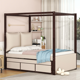 Full Size Upholstered Canopy Bed with Trundle and 3 Drawers