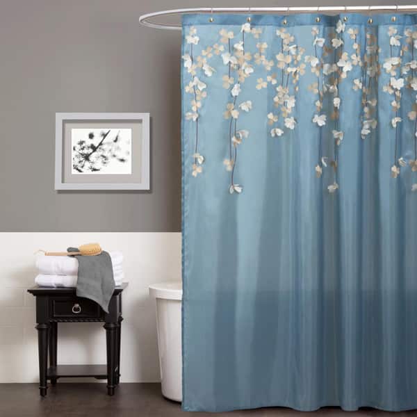 Lush Decor Flower Drops Federal Blue/ White Shower Curtain