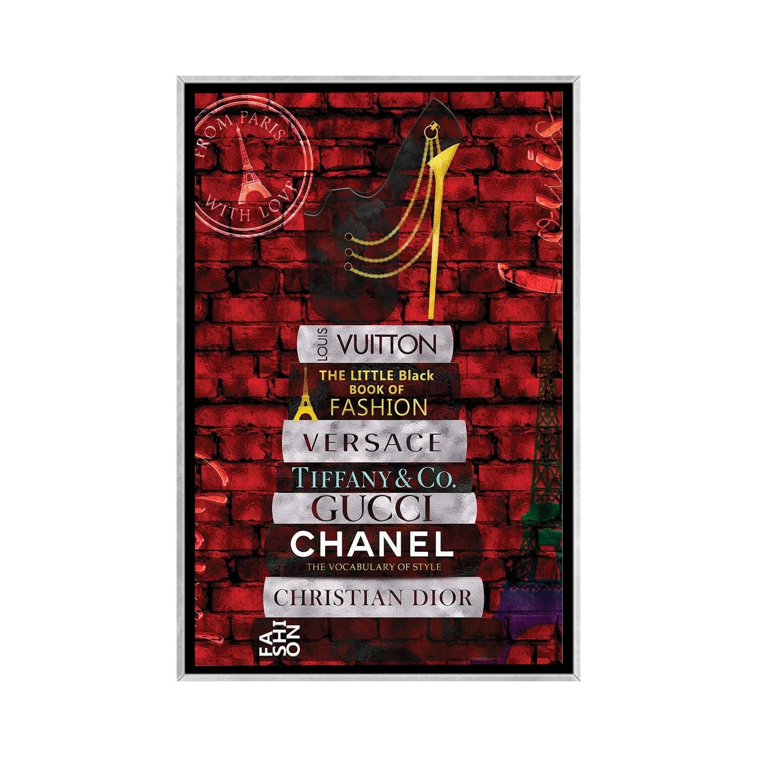 iCanvas "Black Side Books With Shoe - Grunge" by Amanda Greenwood Framed Canvas Print