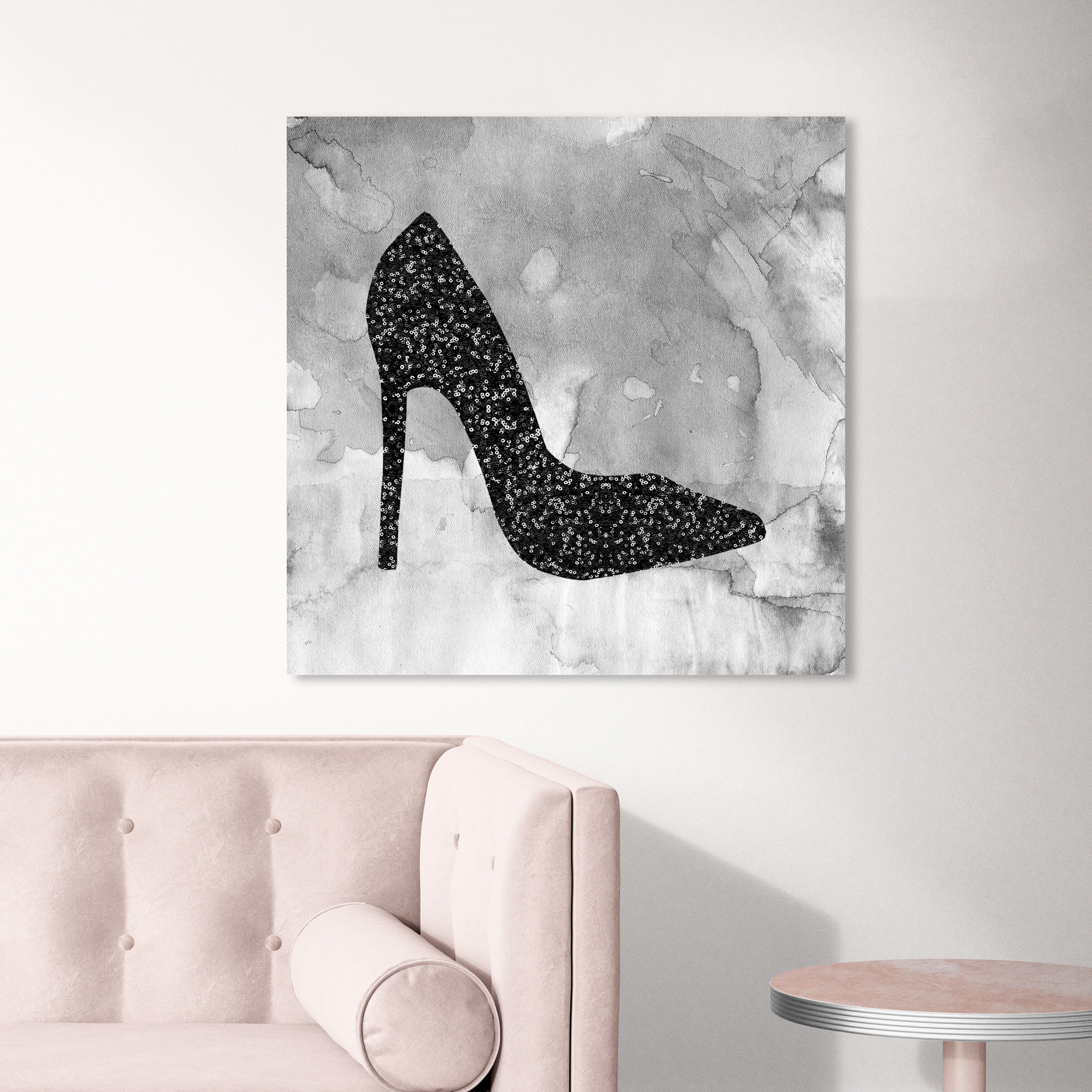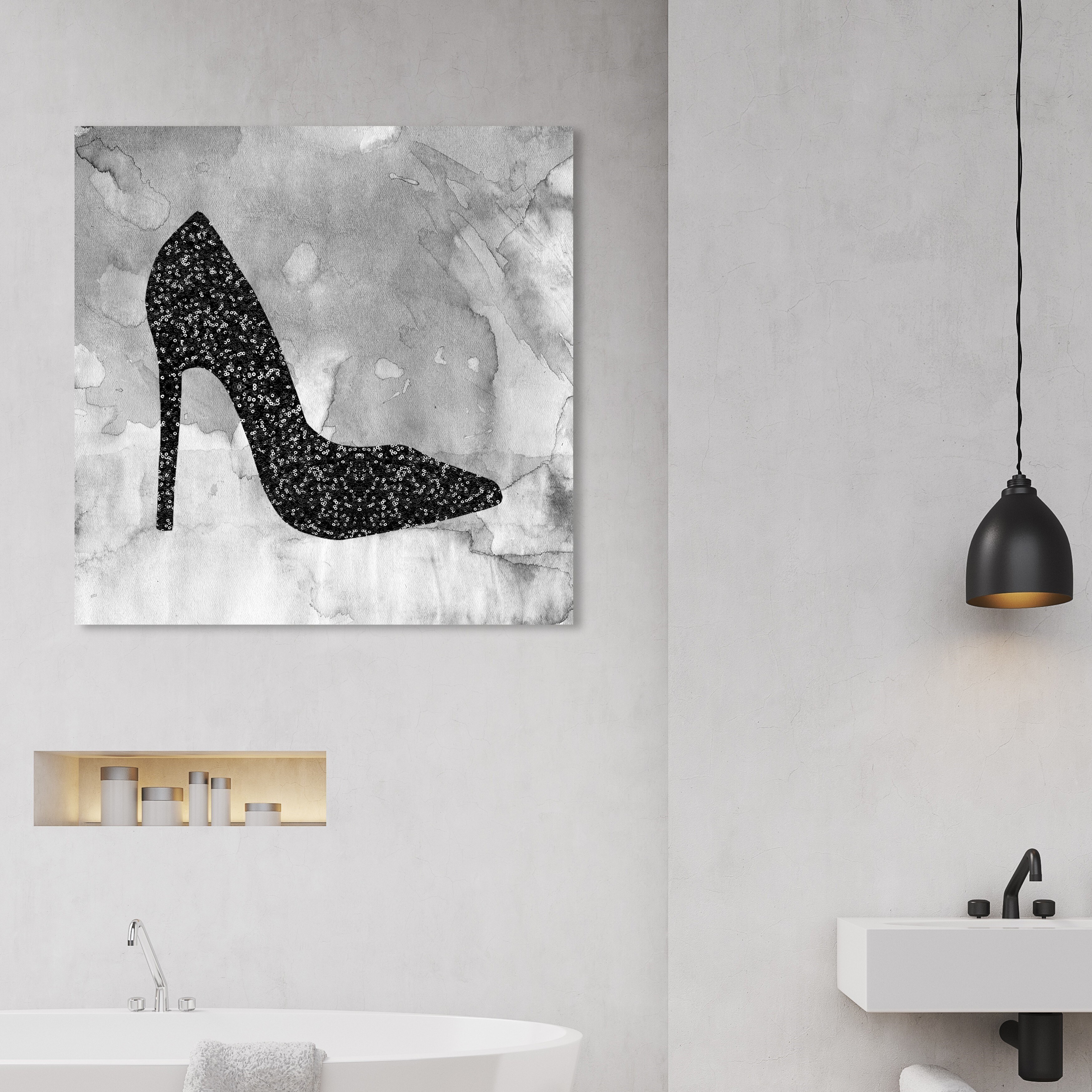 Oliver Gal 'Black Sequins Shoe' Fashion and Glam Wall Art Canvas Print Shoes - Black, Gray