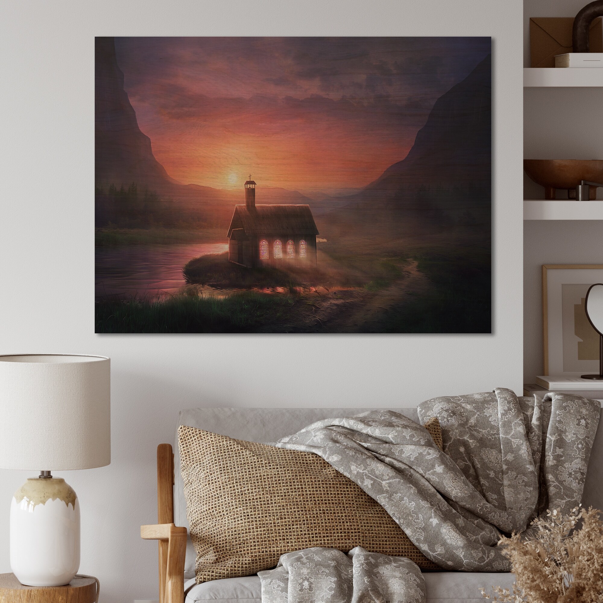 Designart 'Christian Church Has Lights Shining' Traditional Wood Wall Art Panels - Natural Pine Wood