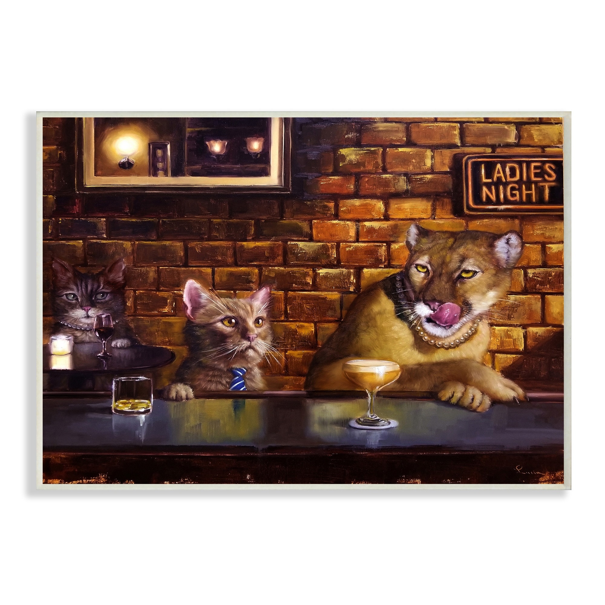 Stupell Industries Cougar at the Bar Ladies Night Animal Humor Wood Wall Art - Multi-Color