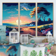 Designart "Modern Sunset in Vector Style IV" Modern Landscape Beach Framed Canvas Art Print - 3 Panels