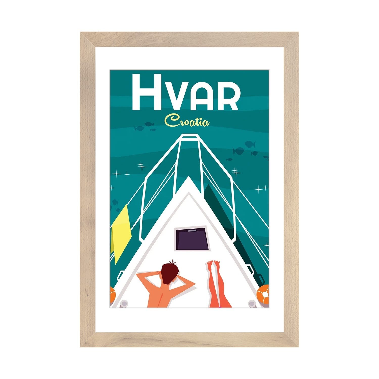 "Croatia, Hvar, Hvar Island, Town on the waterfront" Black Framed Print