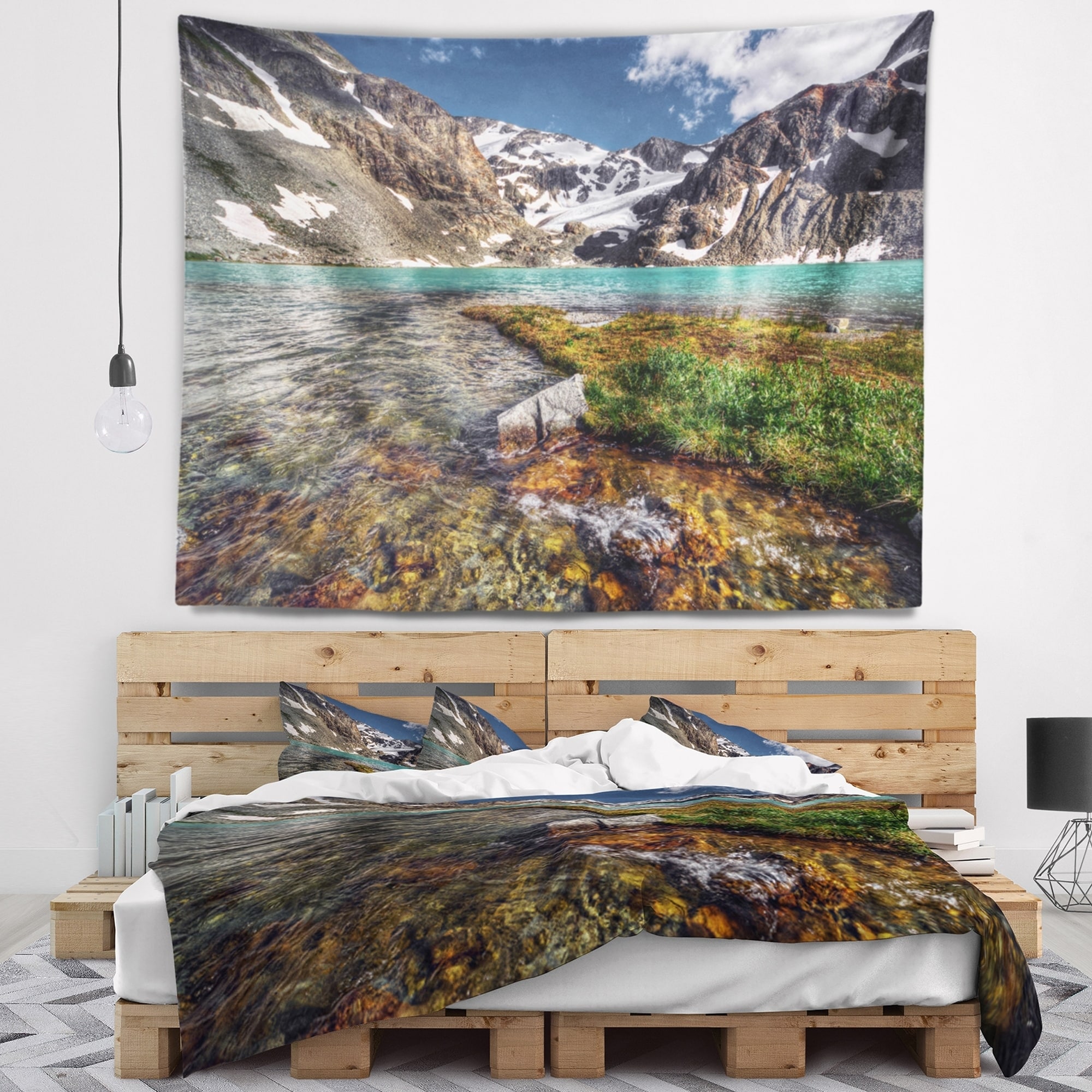 Designart 'Frosted Crystal Clear Lake' Landscape Wall Tapestry