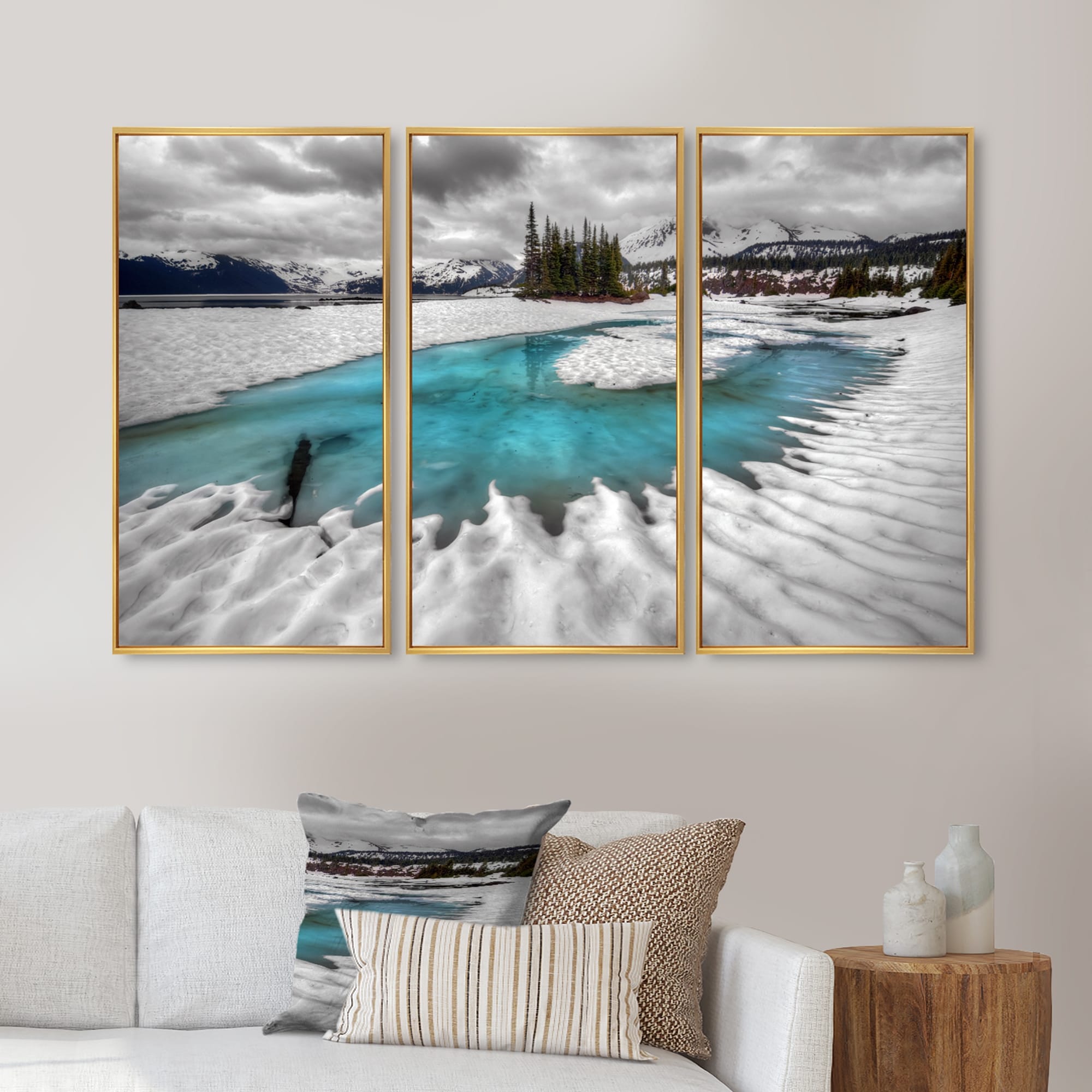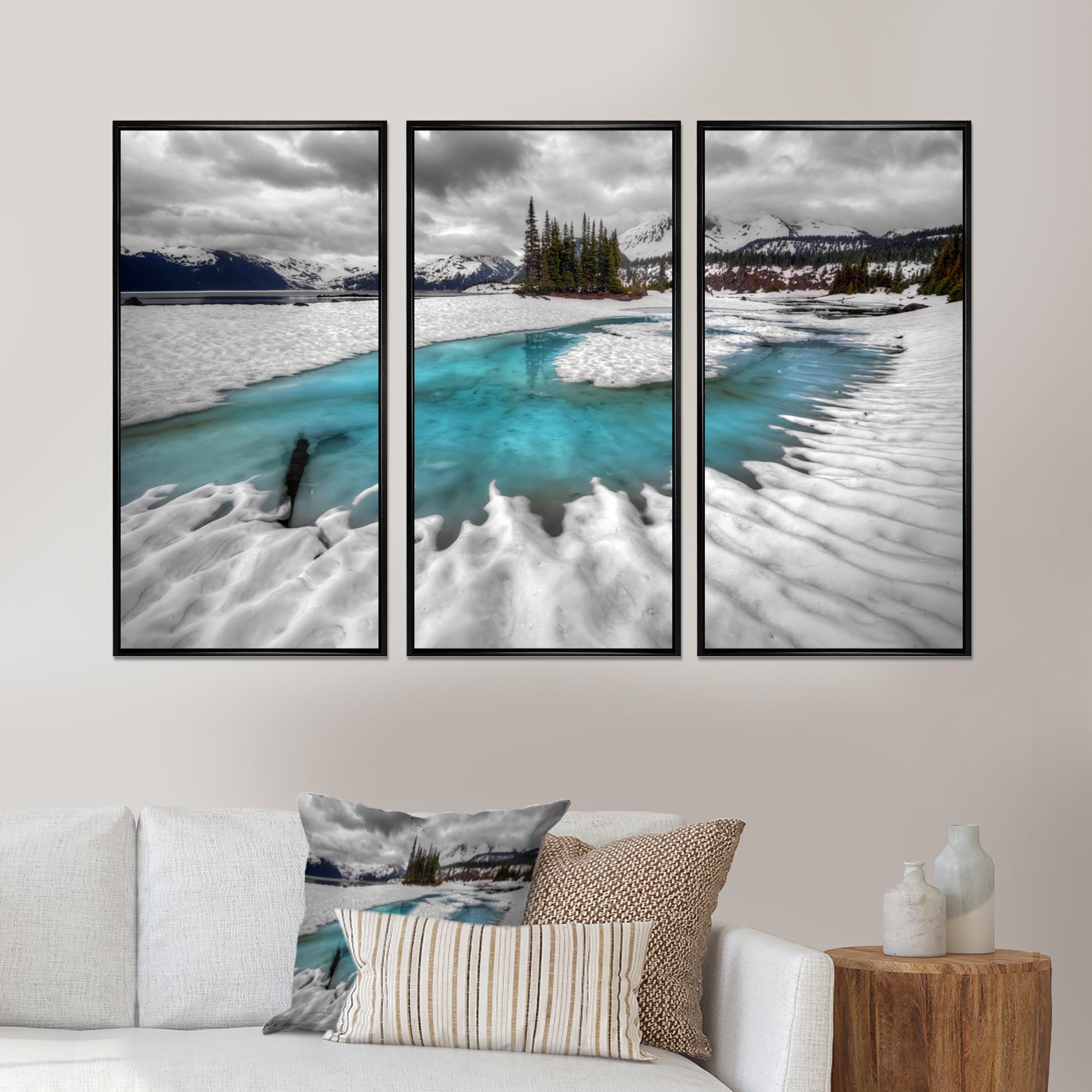 Designart "Frosted Crystal Clear Lake" Landscape Framed Artwork Set of 3 - 4 Colors of Frames