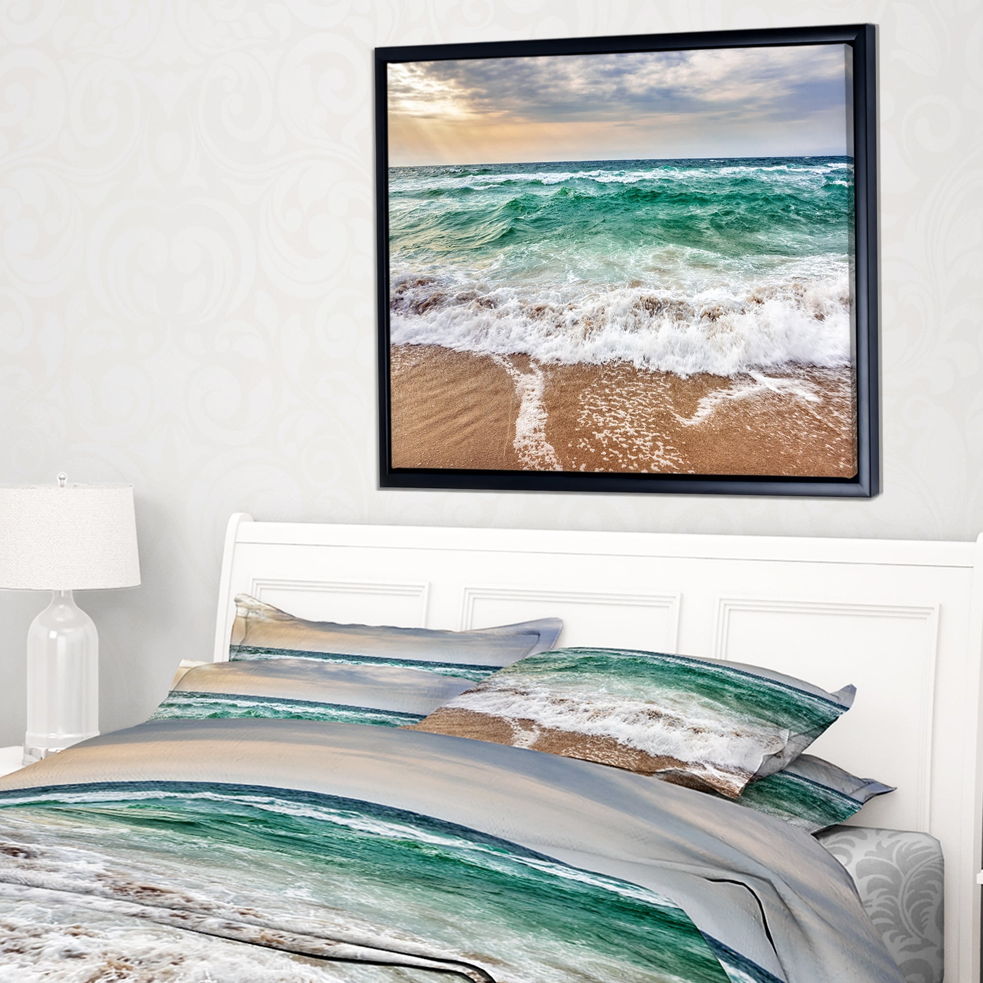Designart "Crystal Clear Blue Foaming Waves" Seascape Framed Canvas Art Print