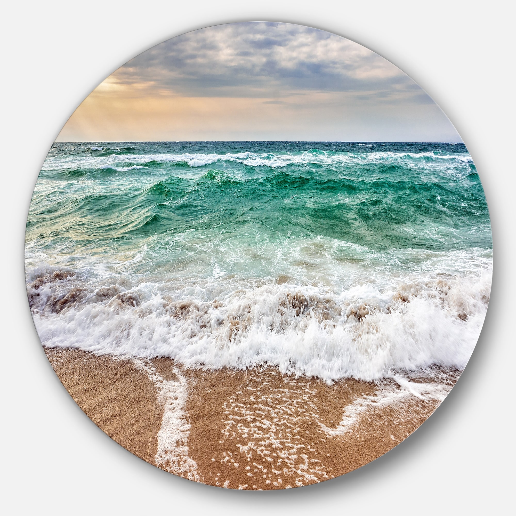 Designart 'Crystal Clear Blue Foaming Waves' Seashore Large Disc Metal Wall art