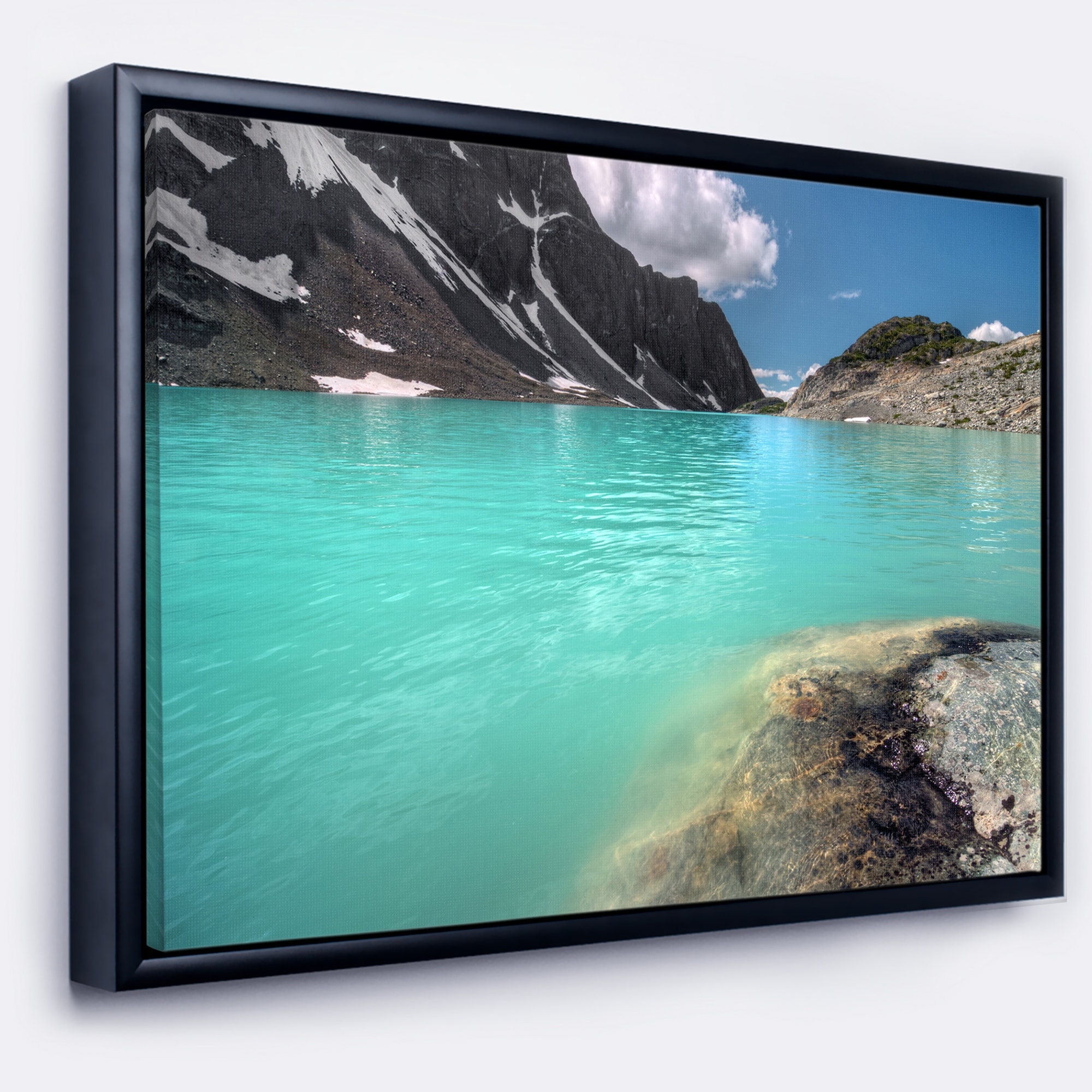 Designart "Crystal Clear Mountain Lake" Landscape Framed Canvas Art Print