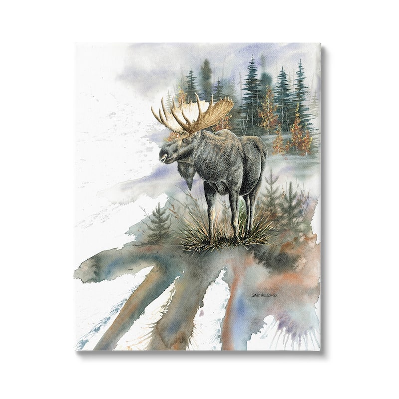 Stupell Industries Wild Moose Forest Nature Scene Floater Canvas Wall Art by Dave Bartholet