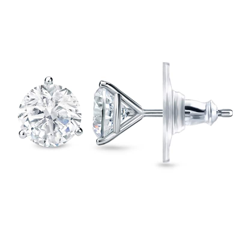 Auriya 2 carat TW 3-Prong Martini Certified Round Diamond Stud Earrings 14k Gold Certified (H-I, SI1-SI2) - H-I, SI1-SI2
