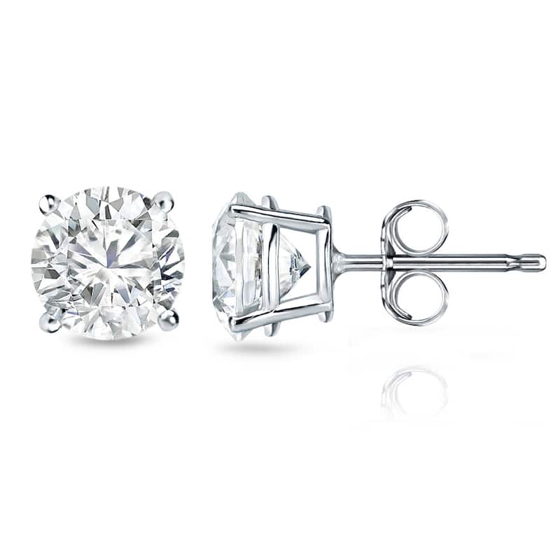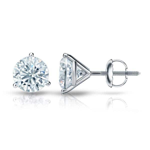 14k Gold 1ct TDW 3 prong Lock Back Round Diamond Stud Earrings by Auriya