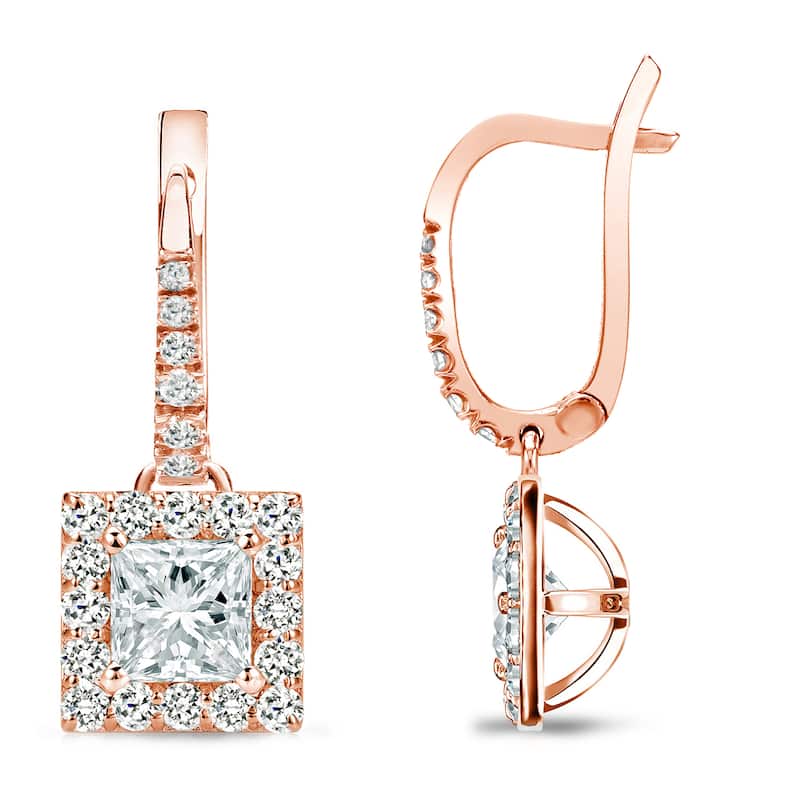 Auriya 1ctw Princess-cut Halo Diamond Dangle Earrings 14k Rose Gold (H-I, SI1-SI2)