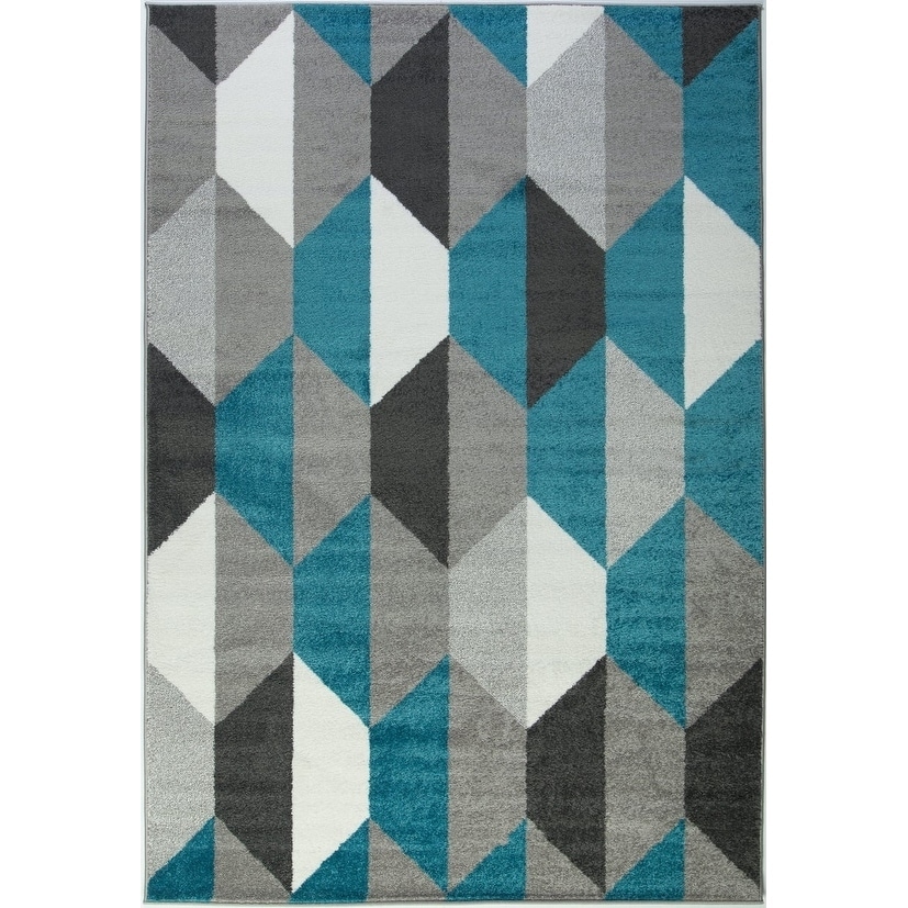 LaDole Rugs Innovative Beautiful Abstract Rug in Teal Cream Grey 3x5