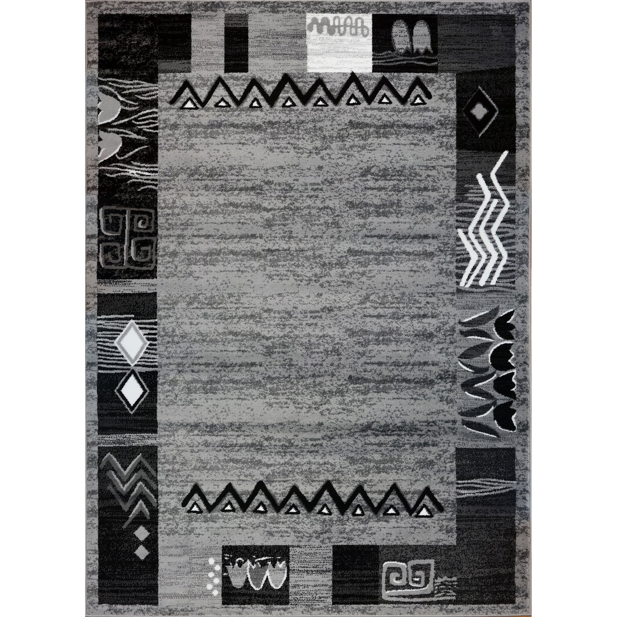 LaDole Rugs Boarder Contemporary Style Area Rug in Dark Grey