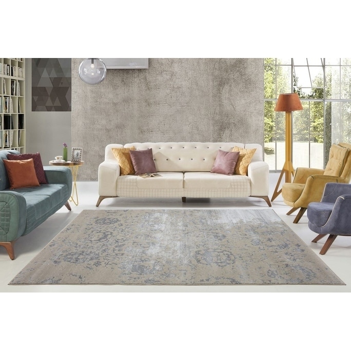 LaDole Rugs Hamilton Durable Turkish Area Rug in Grey Ivory