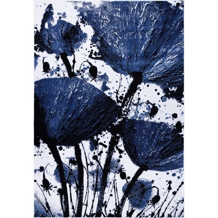 LaDole Rugs Floral Pattern Poppy Abstract Area Rug in Blue Cream