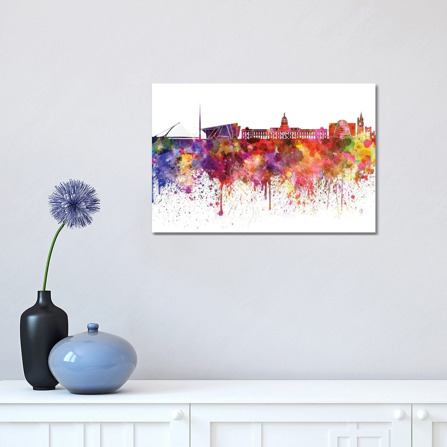 iCanvas "Dublin Skyline in Watercolor Background" by Paul Rommer Canvas Print