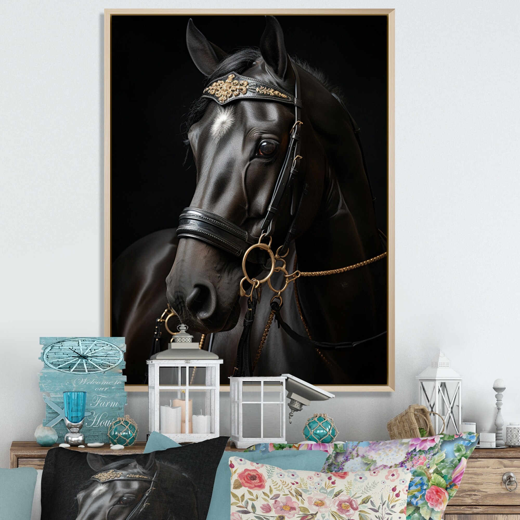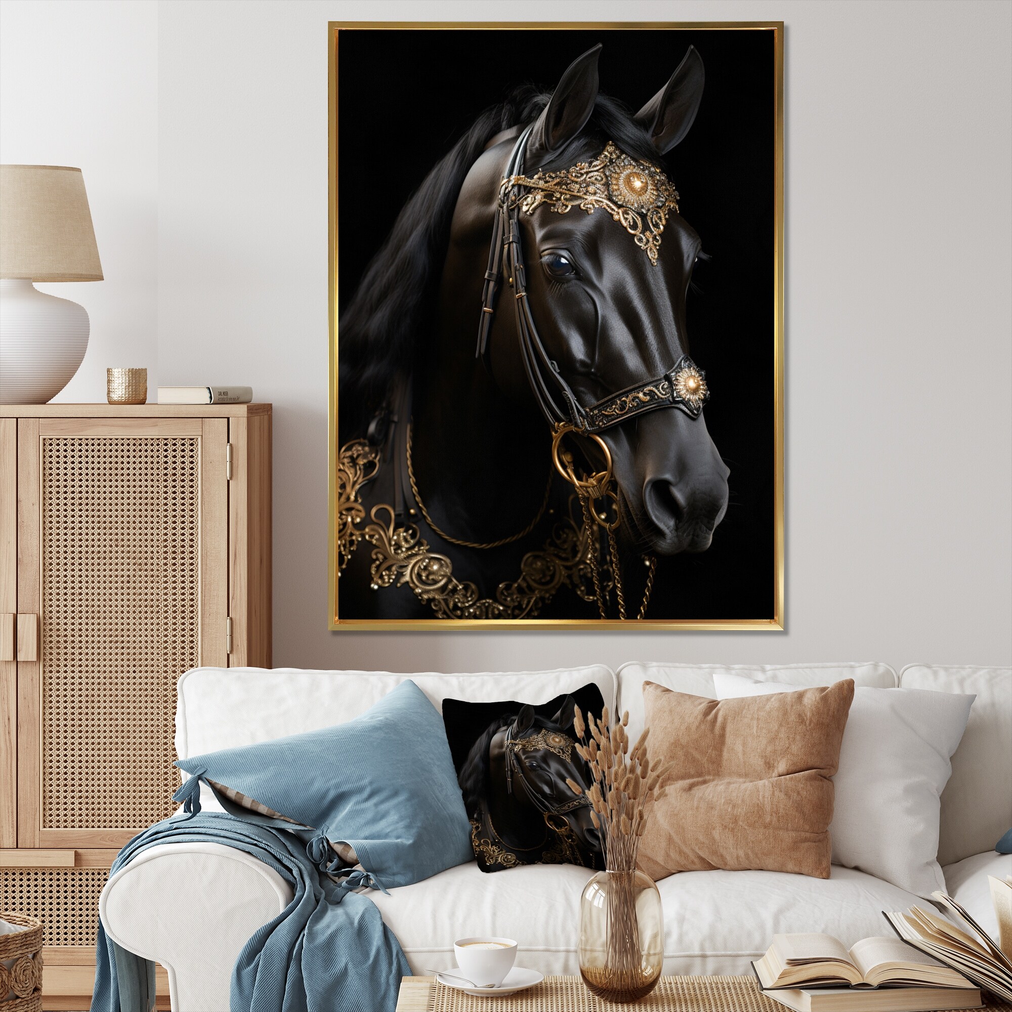 Designart "Black Gold Horse Golden Equestrian I" Animals Horse Framed Canvas Print