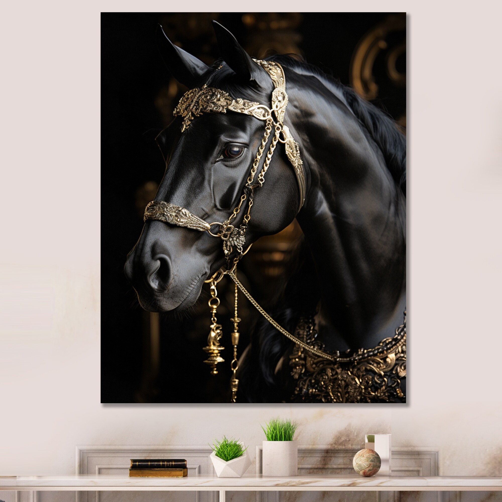 Designart "Black Gold Horse Golden Equestrian II" Animals Horse Canvas Print