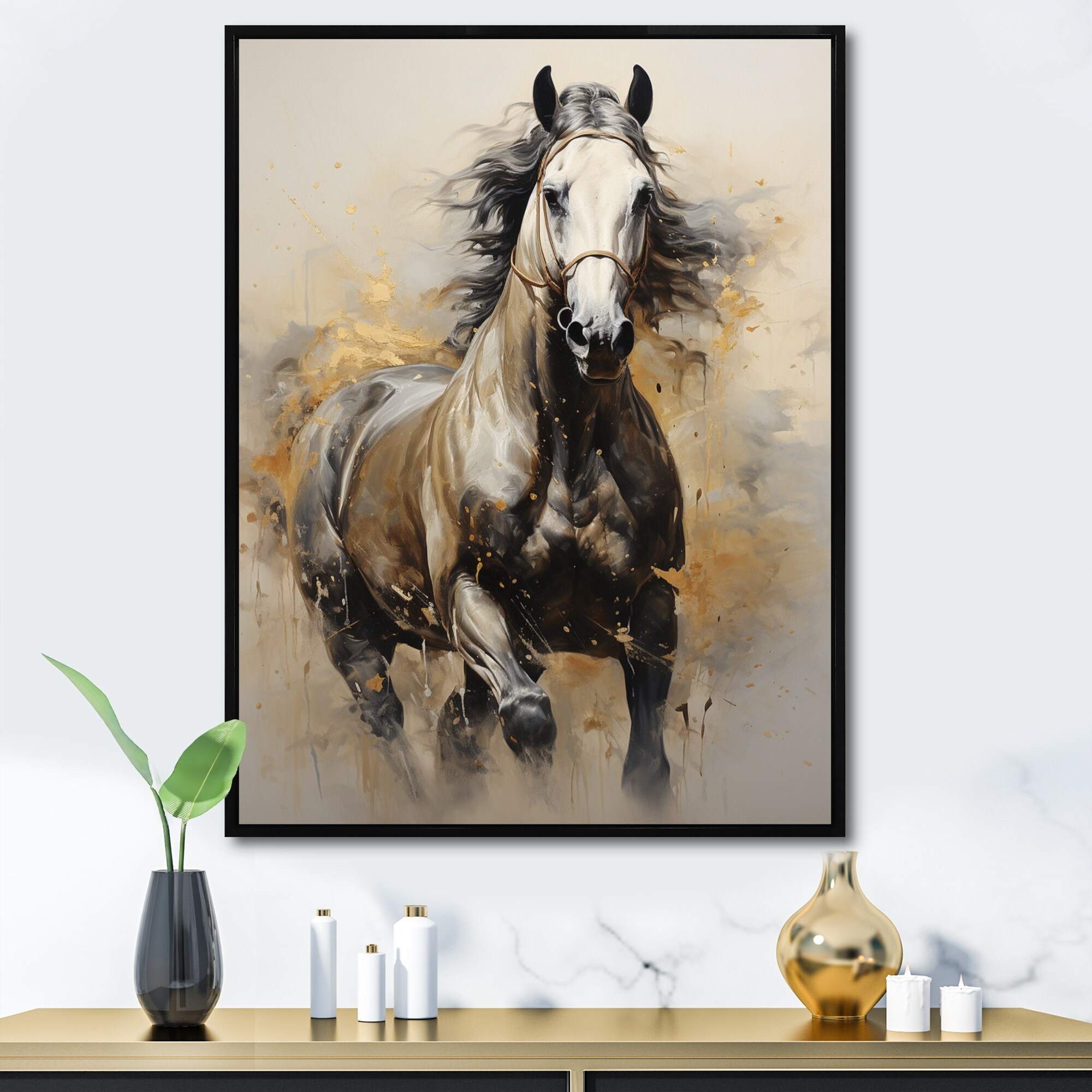 Designart "Beige Horse Golden Equestrian Pointillism" Animals Horse Framed Canvas Art Print